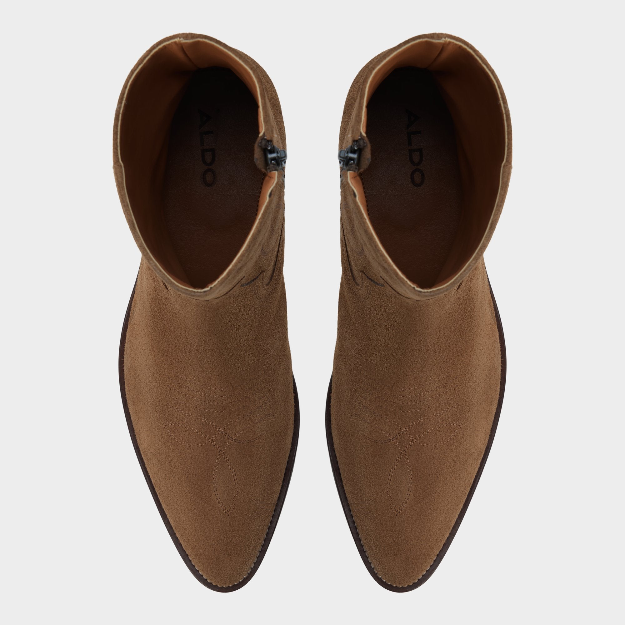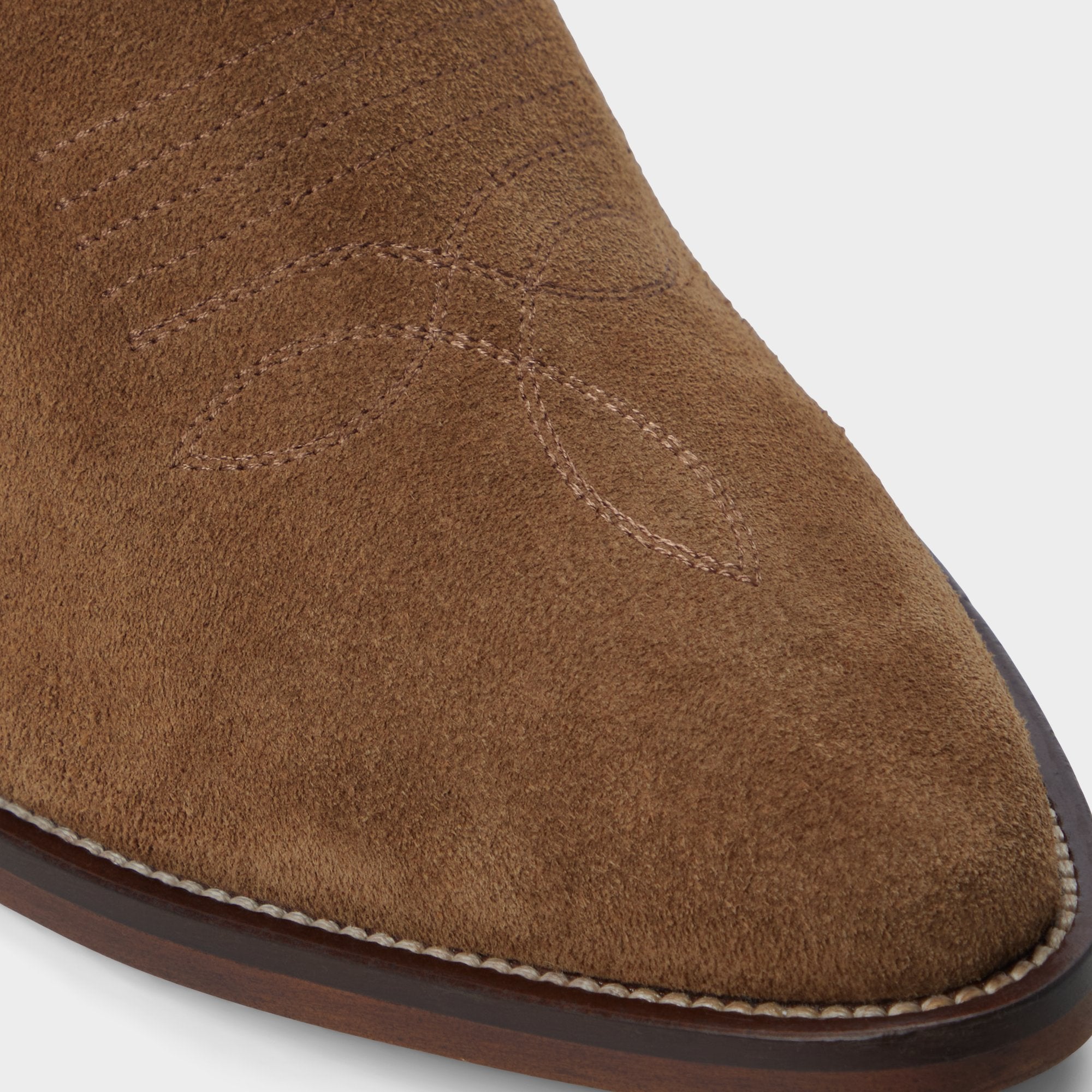 Velvety brown suede meets cowboy-inspired tonal stitching on this almond-toe ankle boot, delivering a stylish vibe with a perfectly balanced stacked block heel and leather lining for all-day comfort. Pair with indigo denim for rooftop outings or slip under wool suits for cool-weather weddings-the Western details blend sophistication and flair effortlessly.