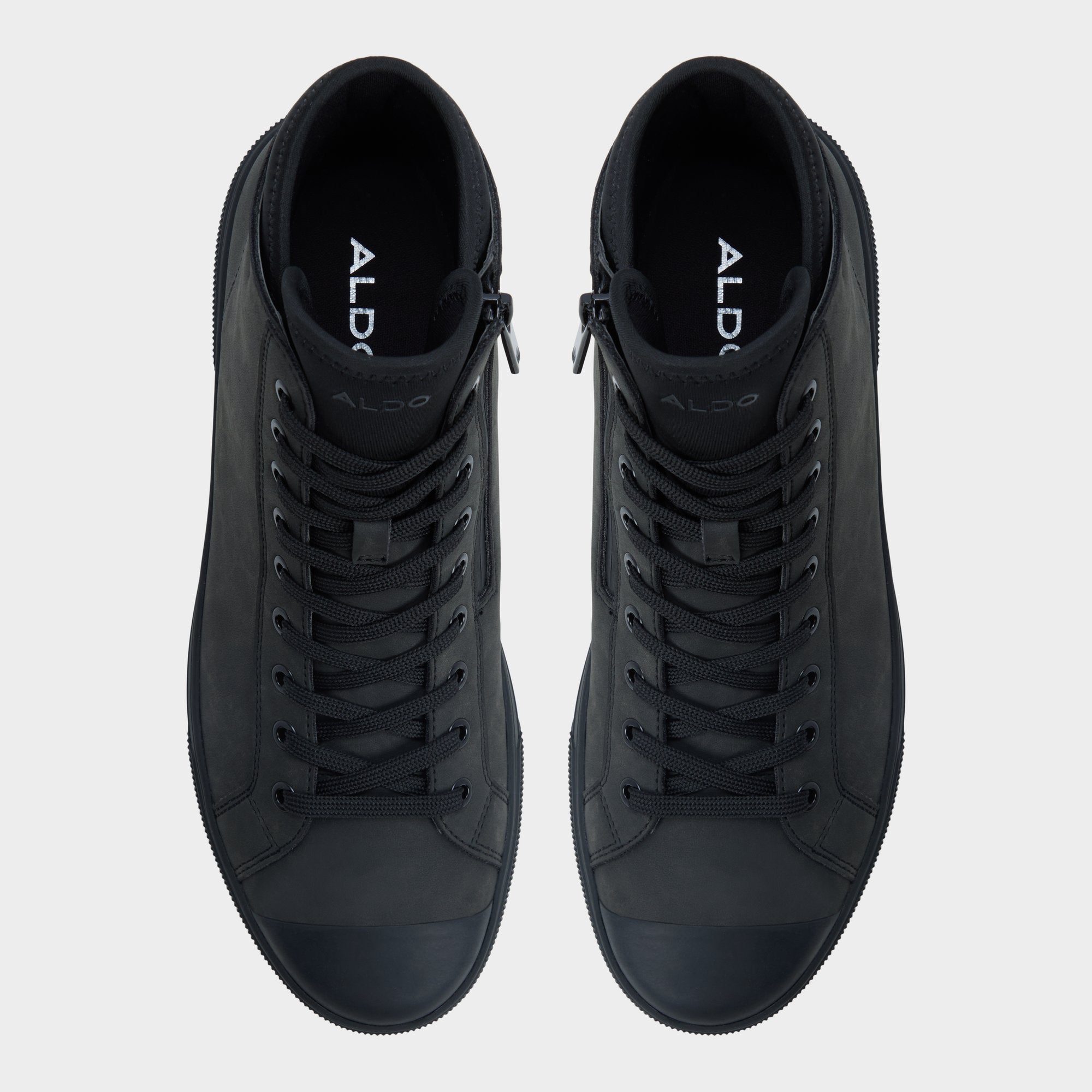 Midnight-matte leather wraps this high-top, giving classic court lines a stealth upgrade, while tonal metal eyelets and a cushioned cup sole keep the ride smooth whether you’re weaving through city traffic or kicking back between sets. Lace it with joggers for weekend record hunts or ground cuffed chinos at patio hangs—the all-black stance plays nicely everywhere.