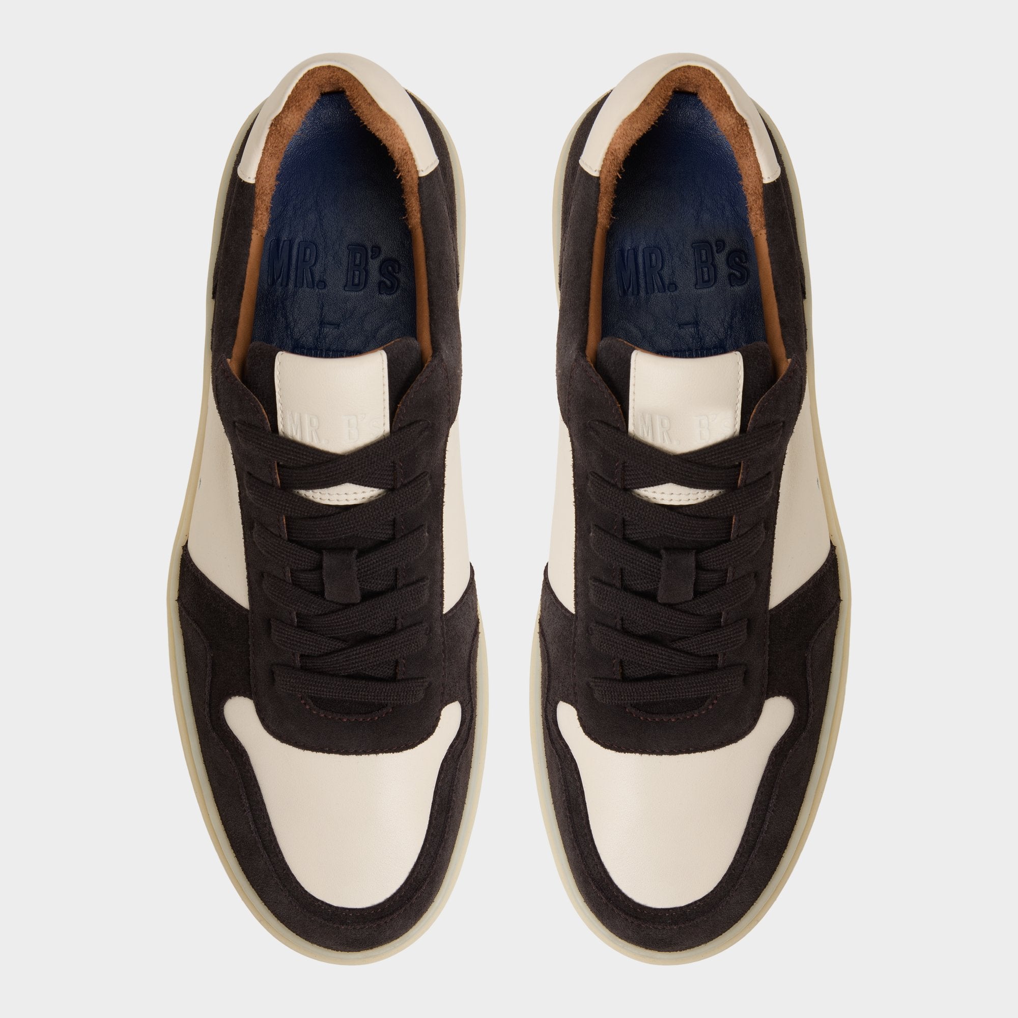 Bold black-and-white leather meets velvety suede in these low-tops, a contrast that quietly elevates every stride and keeps the look polished from dawn to dusk. Team them with tapered joggers for morning coffee runs, or pair with dark denim for city strolls on weekends.