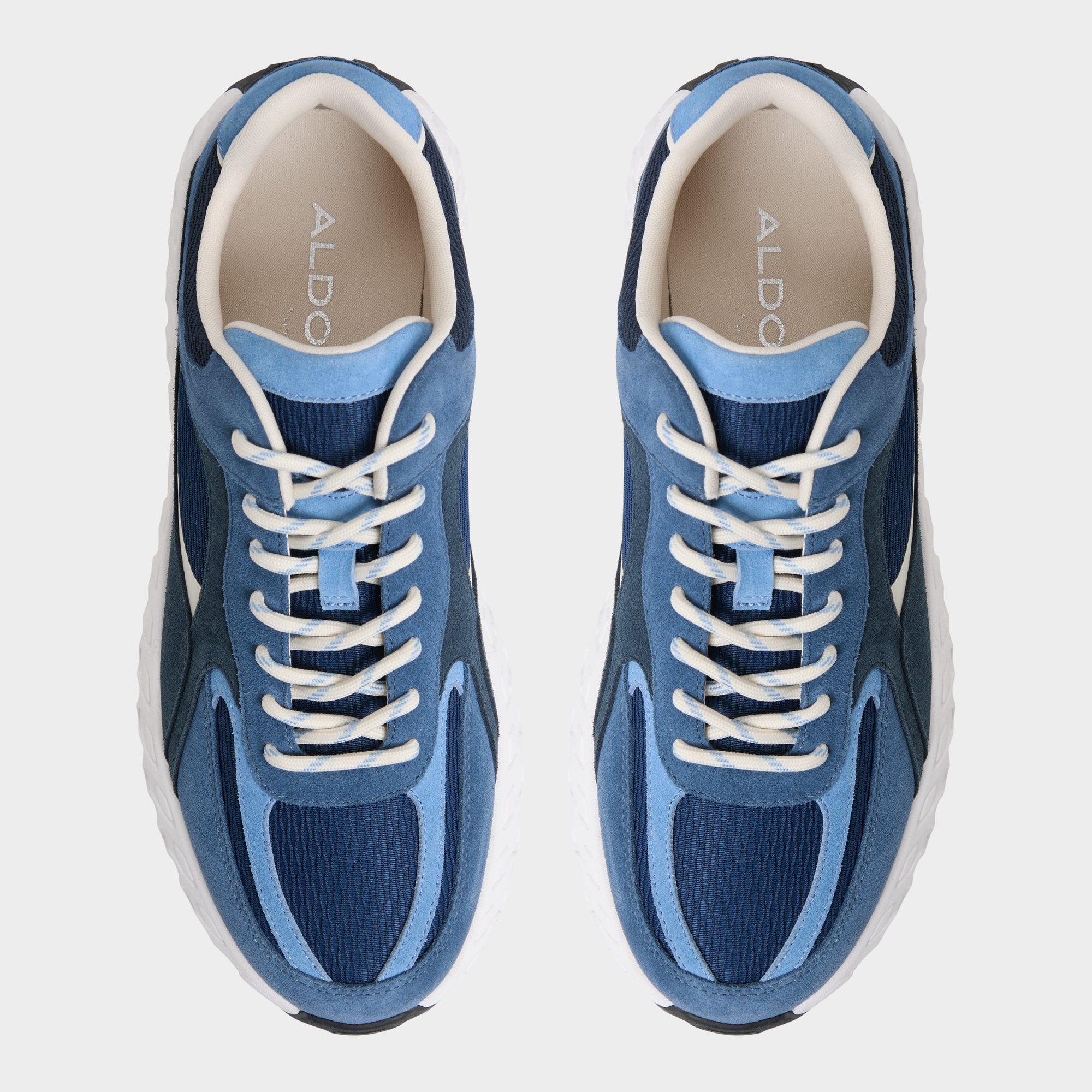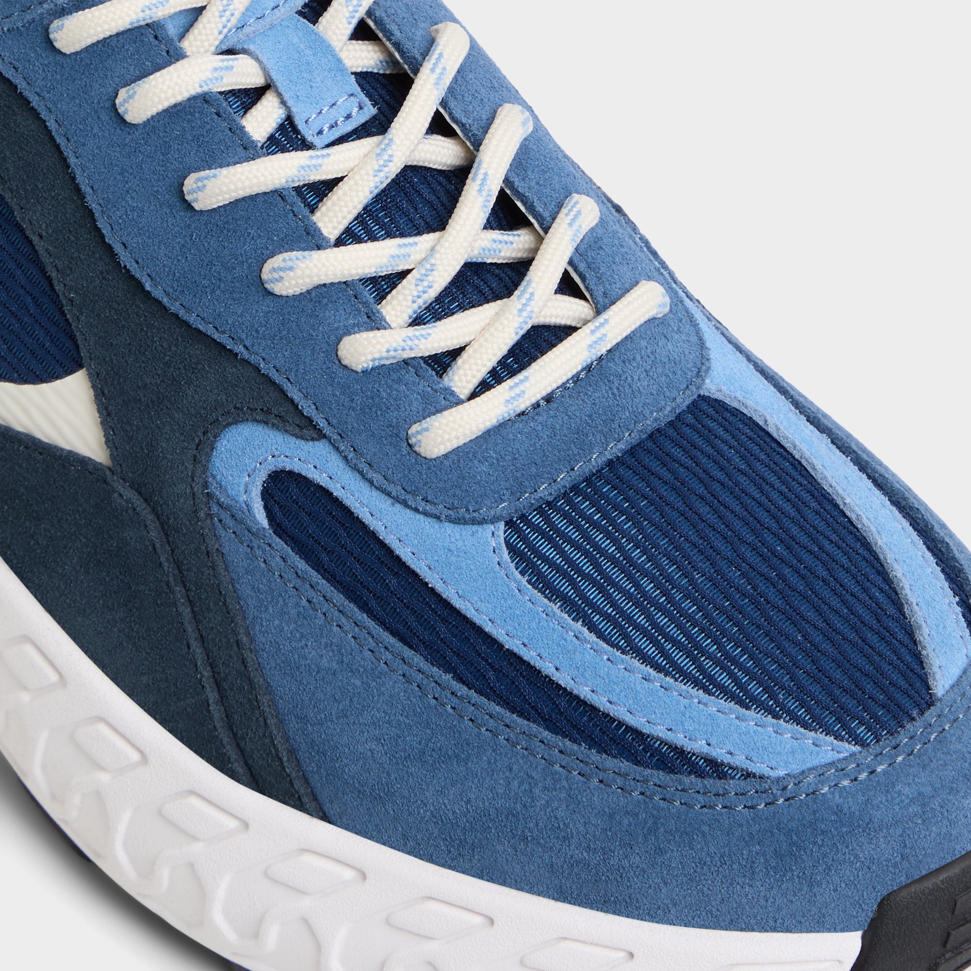 Wave-like sculpting along oversized jogger soles gives this blue suede mesh sneaker a bold silhouette, while airy cushioning keeps everyday steps steady for long days and breezy city strolls. Pair it with tapered denim for coffee runs, or roll with linen shorts for weekend getaways.