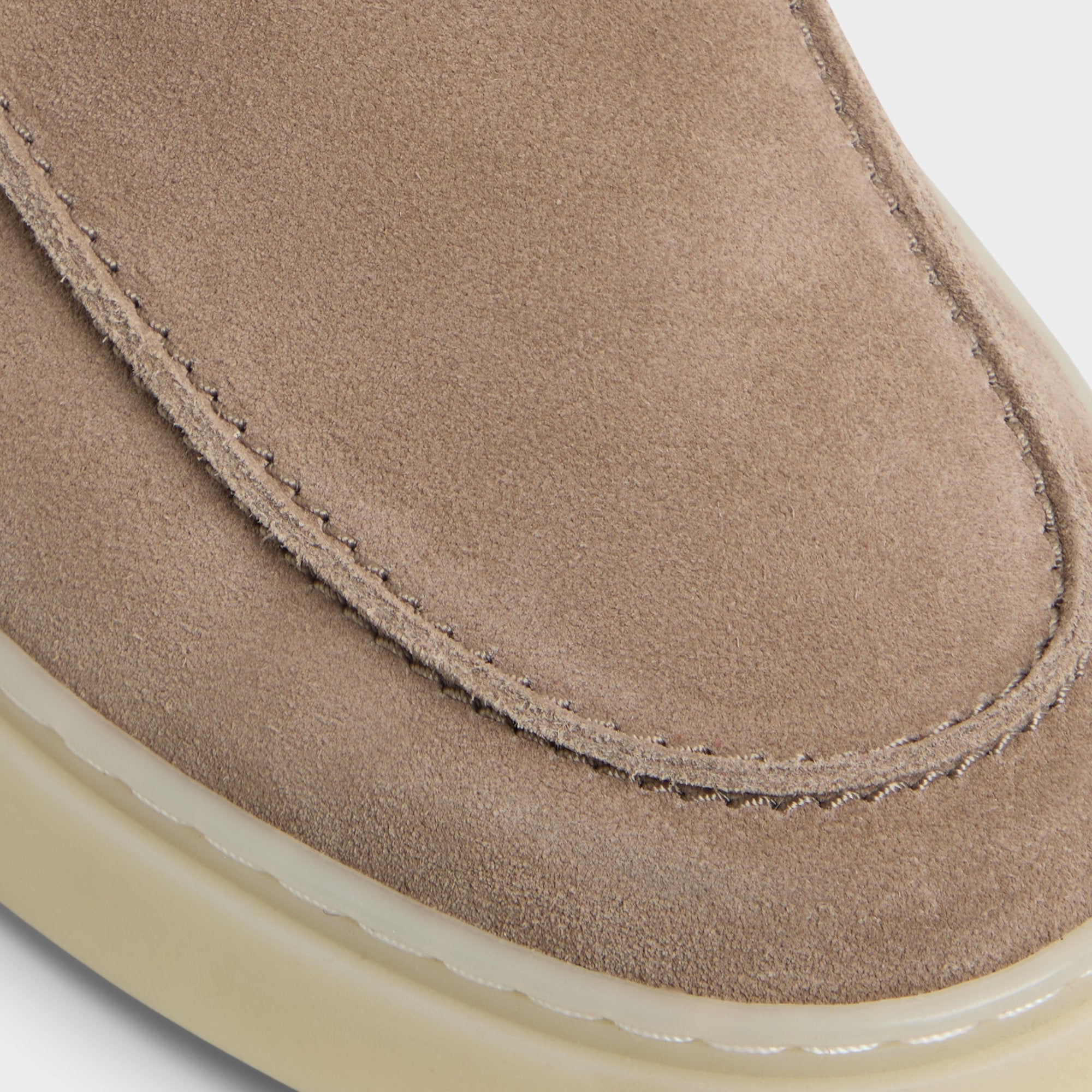 Soft taupe suede meets an ivory cupsole in this loafer, blending laid-back polish with everyday comfort as a cushy underfoot keeps you moving from morning errands to sunset strolls with easy confidence. Roll chinos for patio lunches or pair with a linen blazer on casual Fridays, easy polish that moves with you.