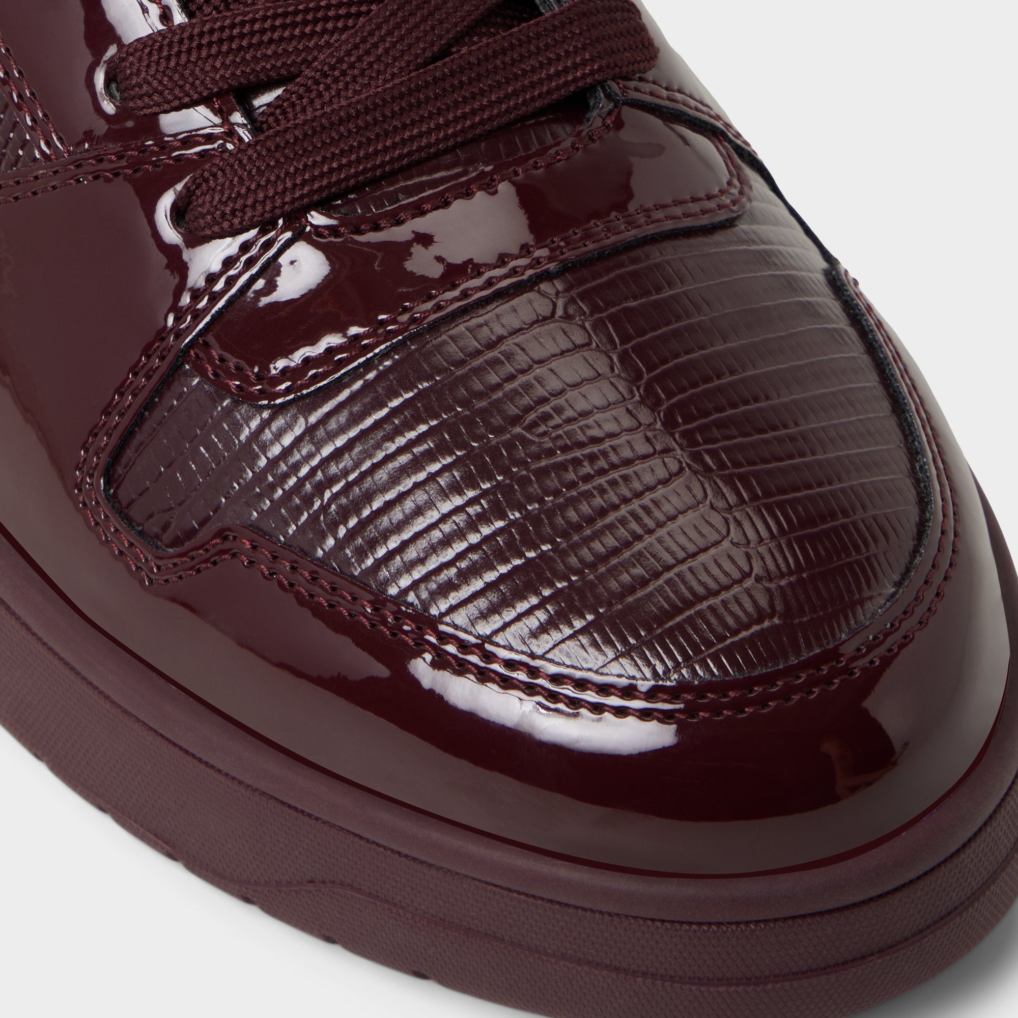 High-gloss patent leather meets textured mesh in a deep burgundy low-top, making everyday strolls a statement, while the sleek rubber cupsole cushions and grips so city laps stay light. Anchor black jeans for gallery openings or pair with tailored joggers on flight days-the tonal build travels light.