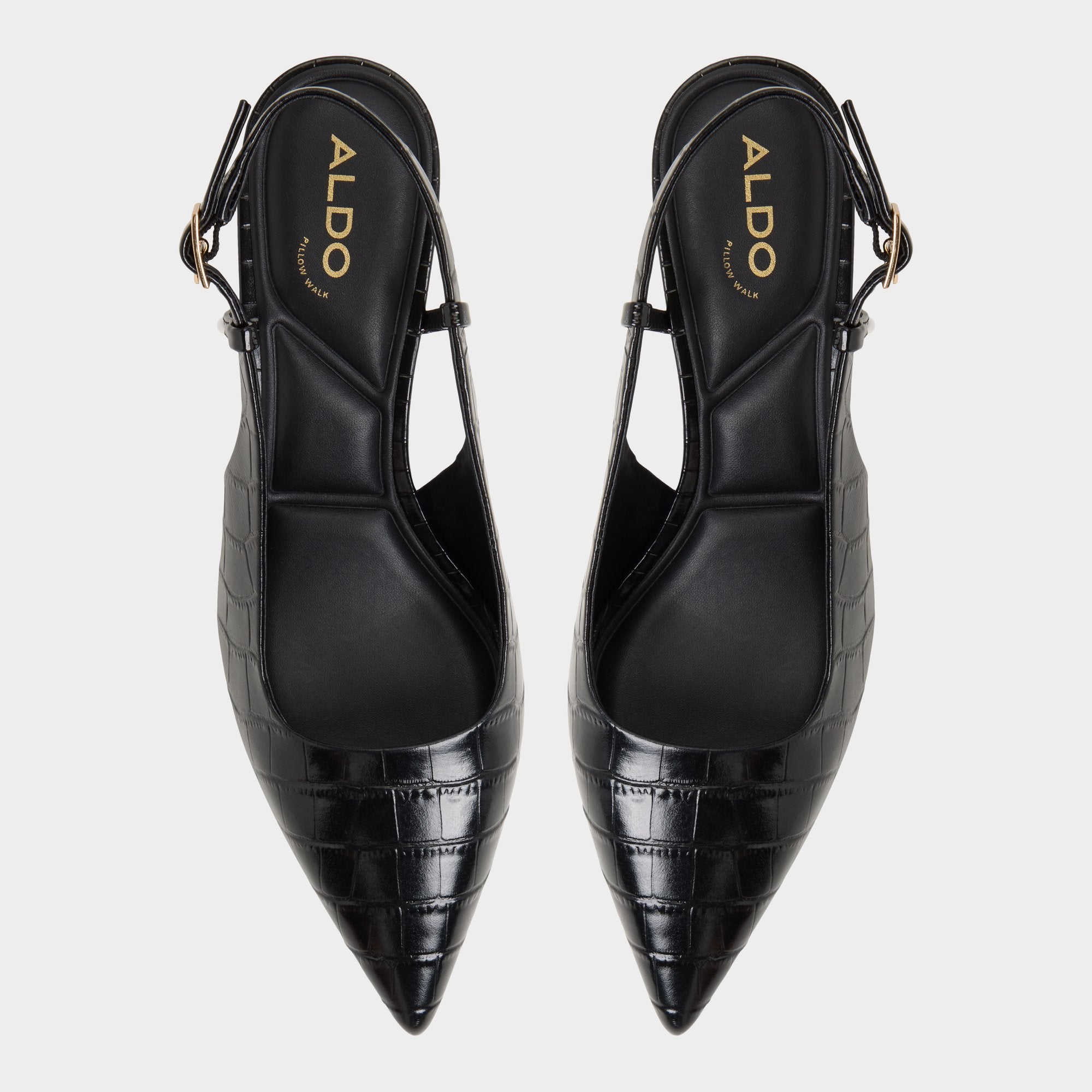 Glossy croc emboss catches streetlights, draping sleek slingbacks over a poised kitten-heel silhouette so every step feels quietly elevated yet effortless, captivating the eye as evening plans unfold and the city becomes a stage. Pair with cropped trousers for pitch mornings, or swap in satin slip skirts when late-night jazz sets shift into moonlit detours.
