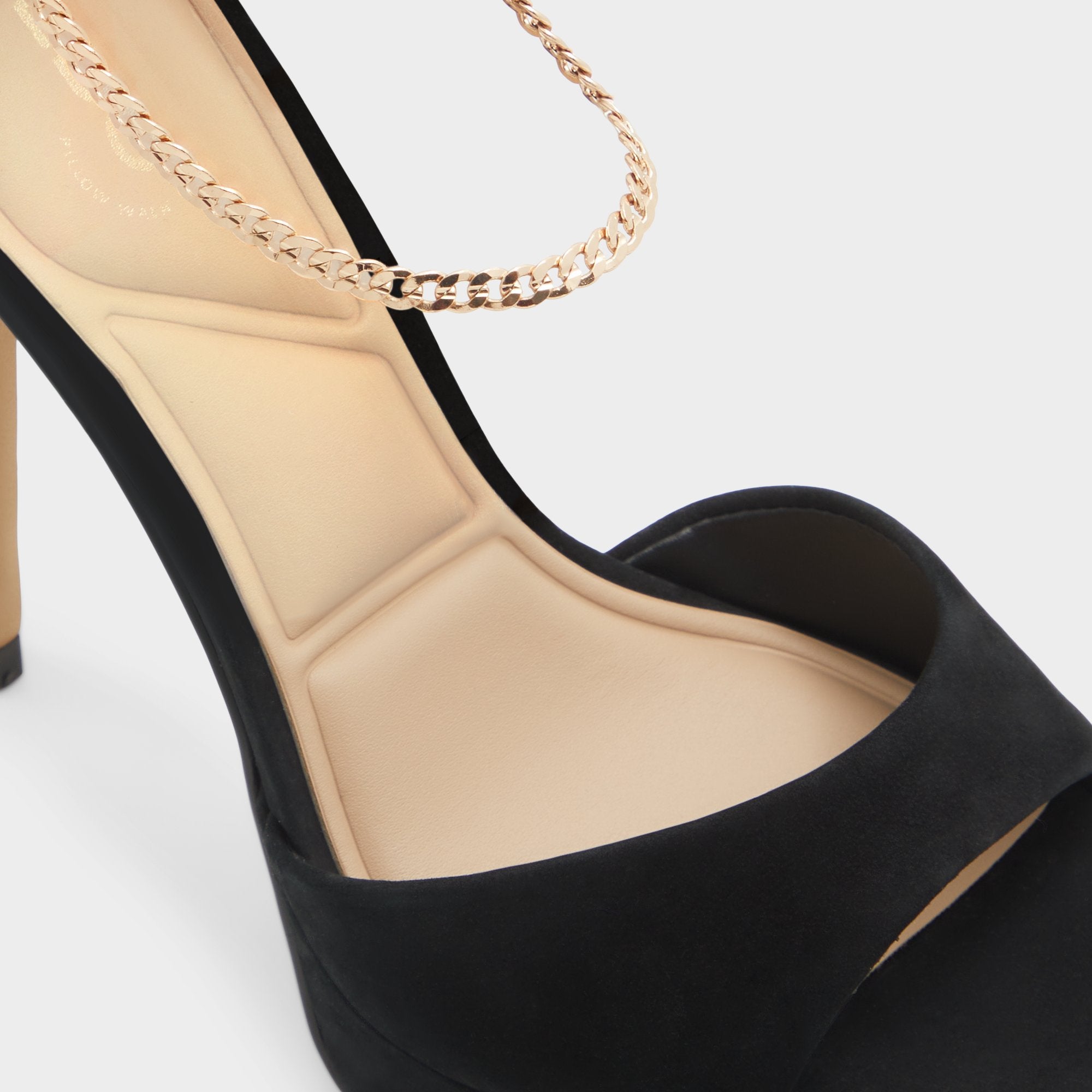 Midnight-soft suede meets a sky-high platform stiletto that elongates everything-yet hidden cushioning keeps the drama wearable-so every elevator ride up to the penthouse feels like part of the main event. Pair with a slip dress for rooftop cocktails, or ground cuffed denim when random late-night dessert runs call for extra flourish.