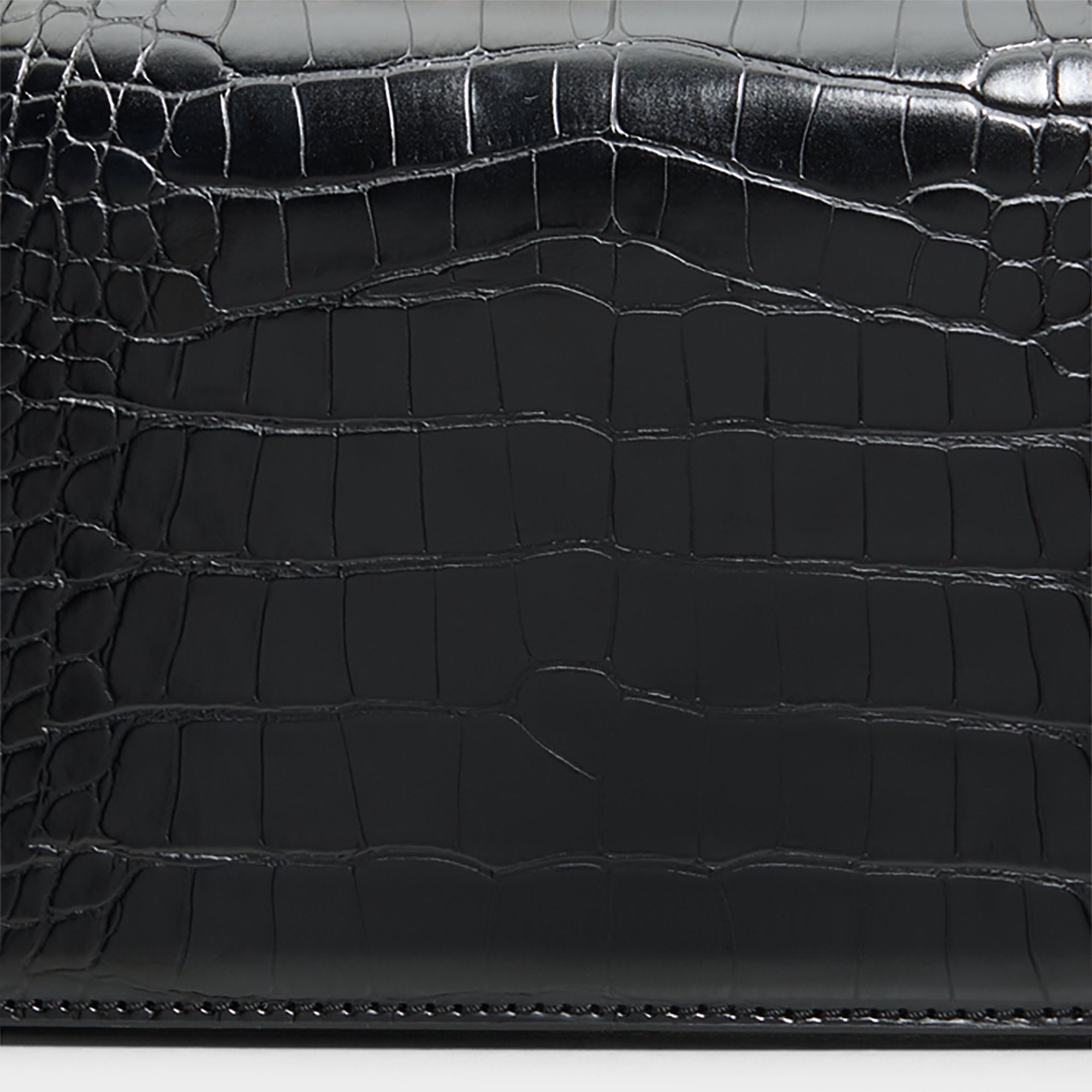 Croc-embossed trapeze silhouette with ornate ring handles makes this bag feel like wearable jewelry, while transforming top-handles snap into a secure metal frame for effortless carry from city errands to rooftop dinners. Carry it with an oversized blazer for city nights or sling it with dress and denim for a versatile finish to any look.
