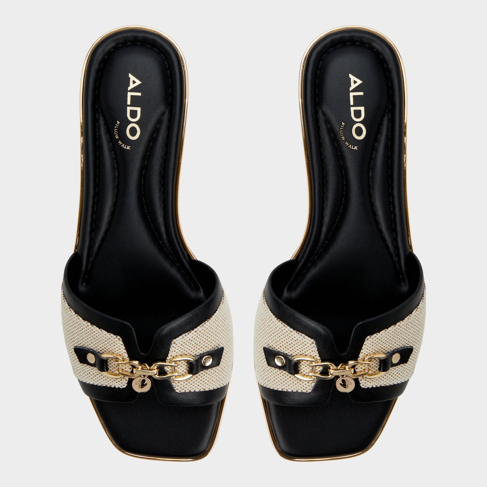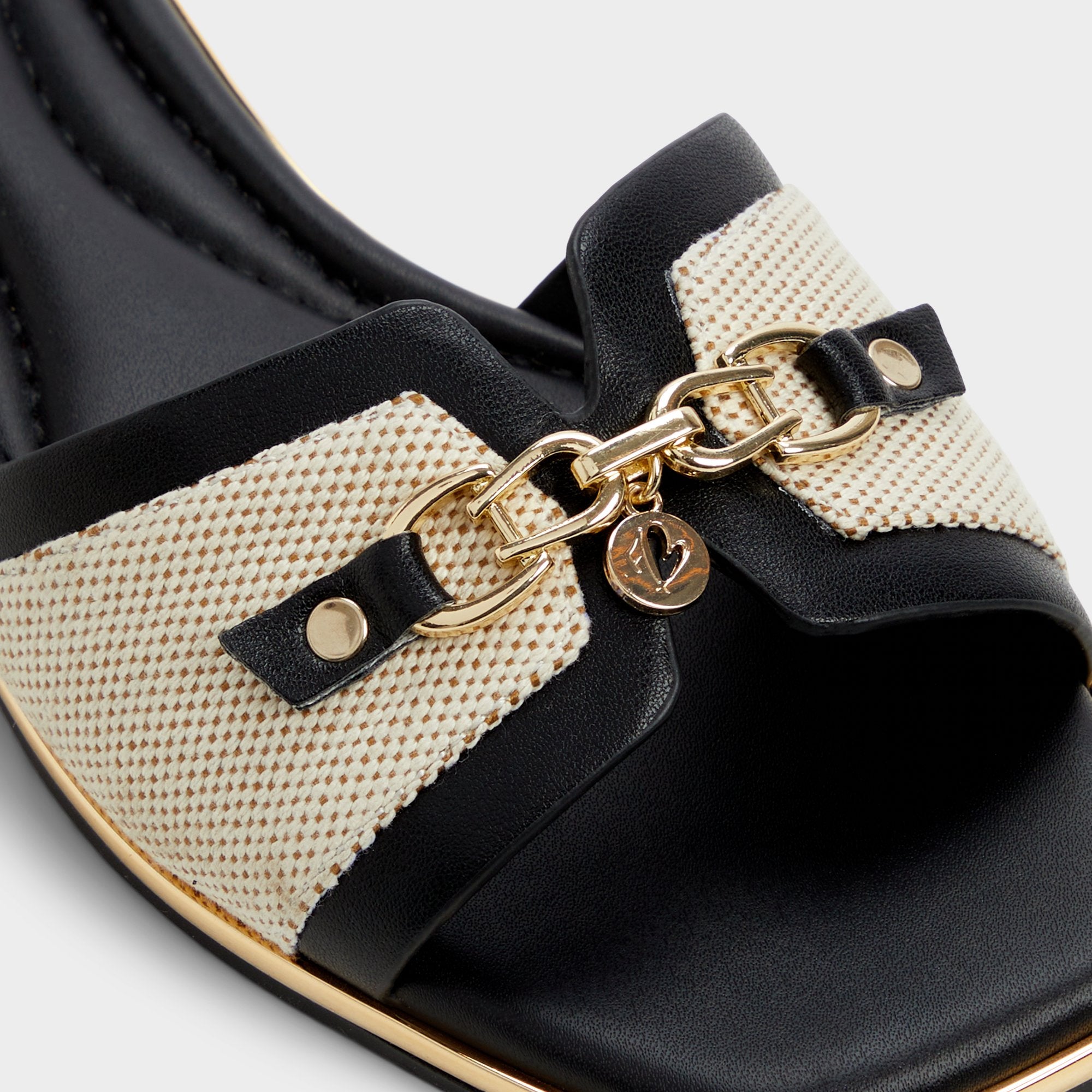 Rugged-soft texture of crisp leather trims meets breezy woven straps and a gleaming gold logo buckle, turning a laid-back slide into a statement piece you can wear from poolside to city corners. Pair with linen shorts for market strolls, or slip on with a satin jumpsuit for rooftop drinks that drift into night-time city lights.