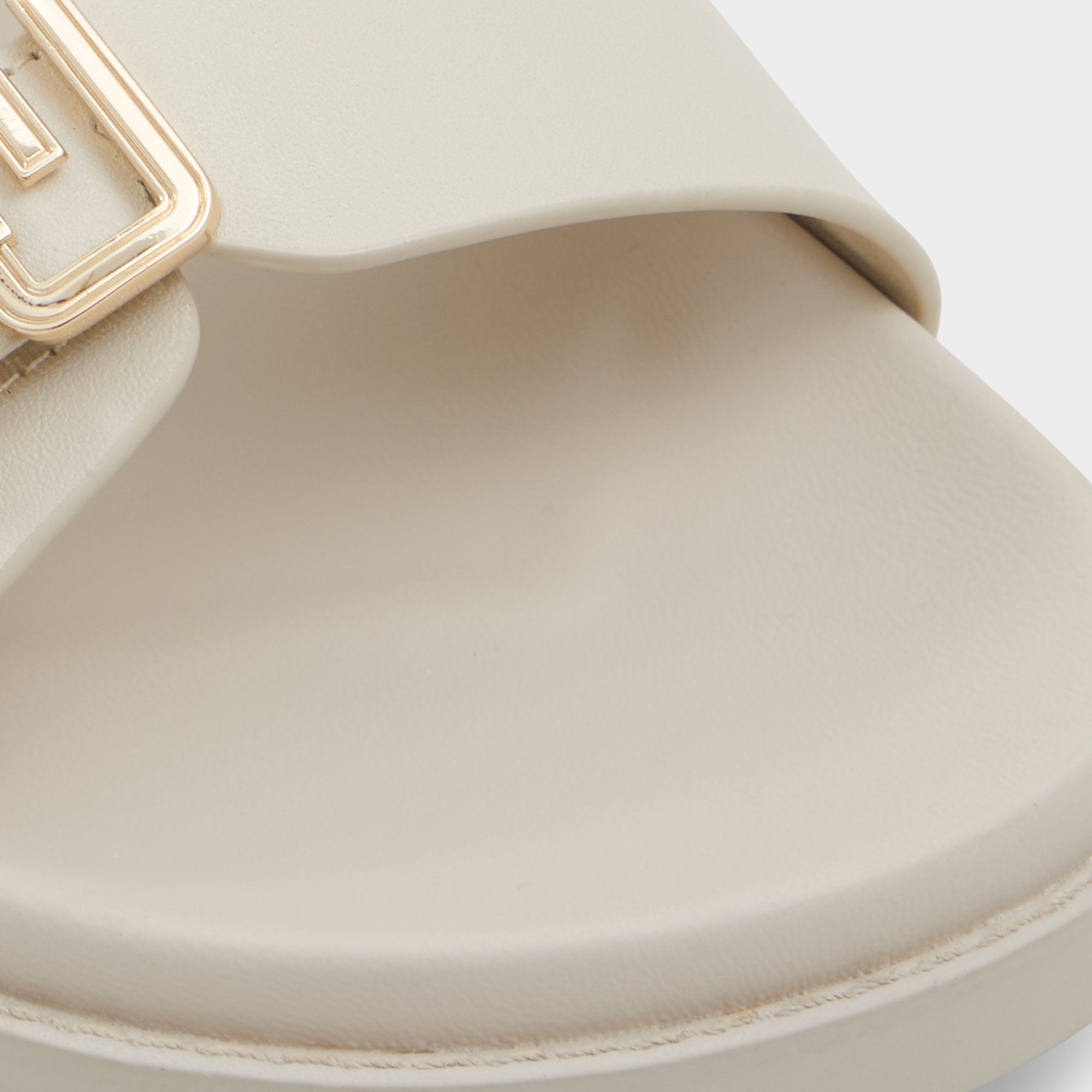 Polished chain-link buckles illuminate the twin straps of this minimalist slide, while a cushy sawtooth-tread sole softens every sidewalk shuffle and pool-side wander with effortless comfort. Pair it with cut-off denim for coffee runs or slide alongside a linen jumpsuit when rooftop rose turns into street-festival strolling.