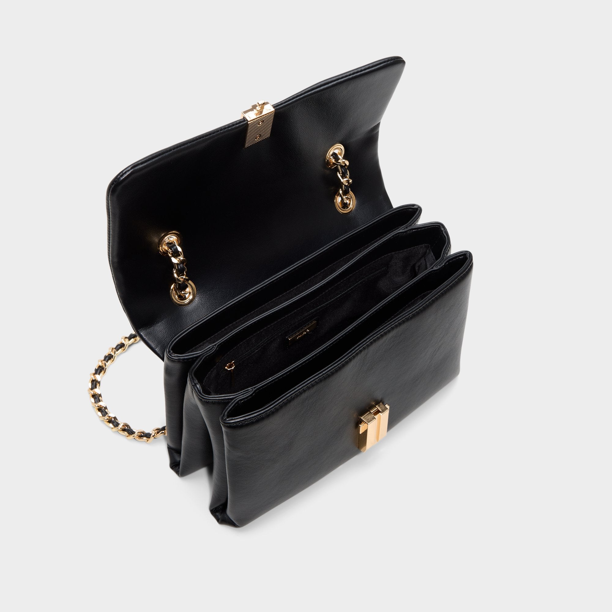 Supple black leather frames a chain-wrapped silhouette, crowned by a bar clasp that snaps shut, turning essentials into a carry with a touch of city-polish. Sling it with a tailored blazer for after-work drinks or tuck it under a little black dress at celebrations to polish every look.
