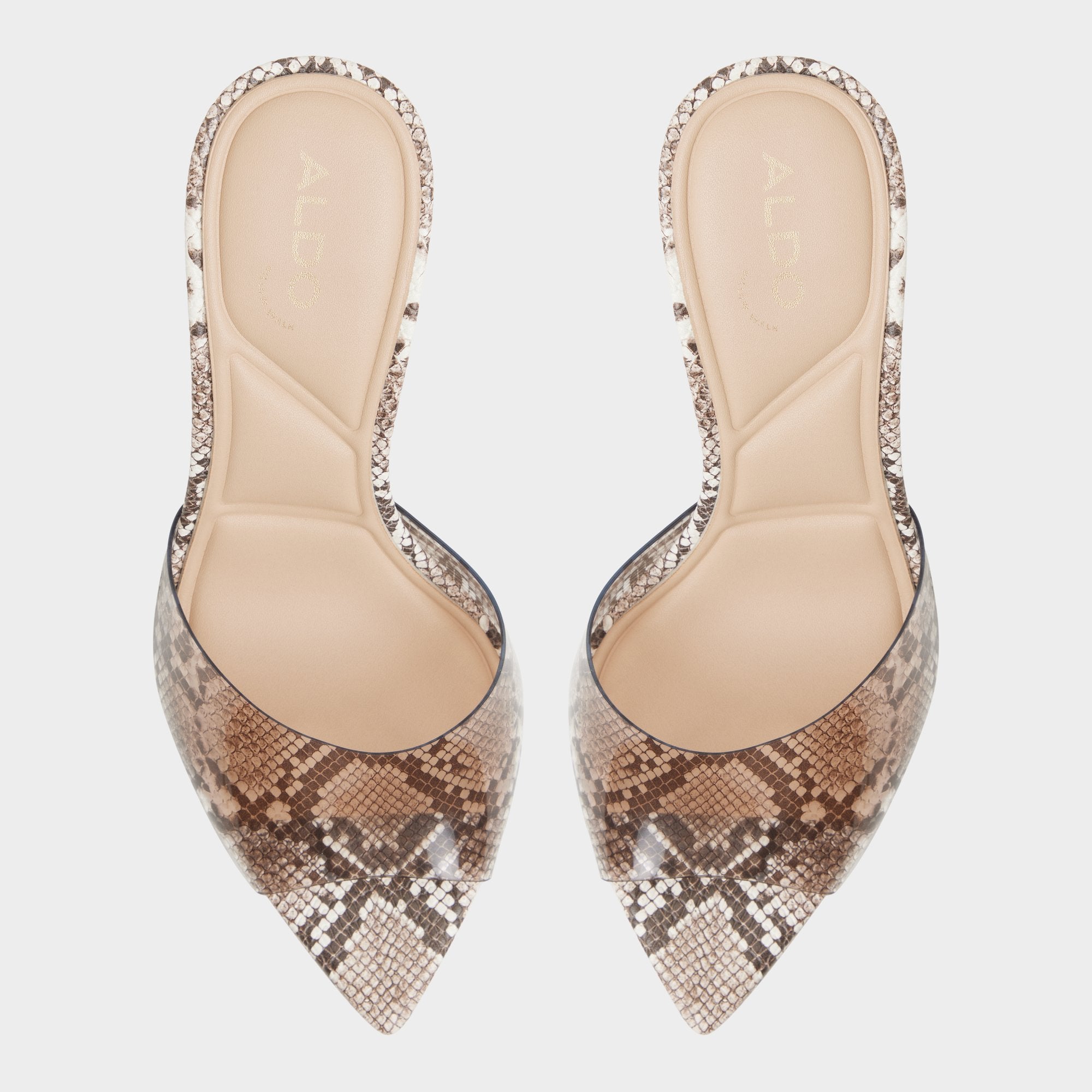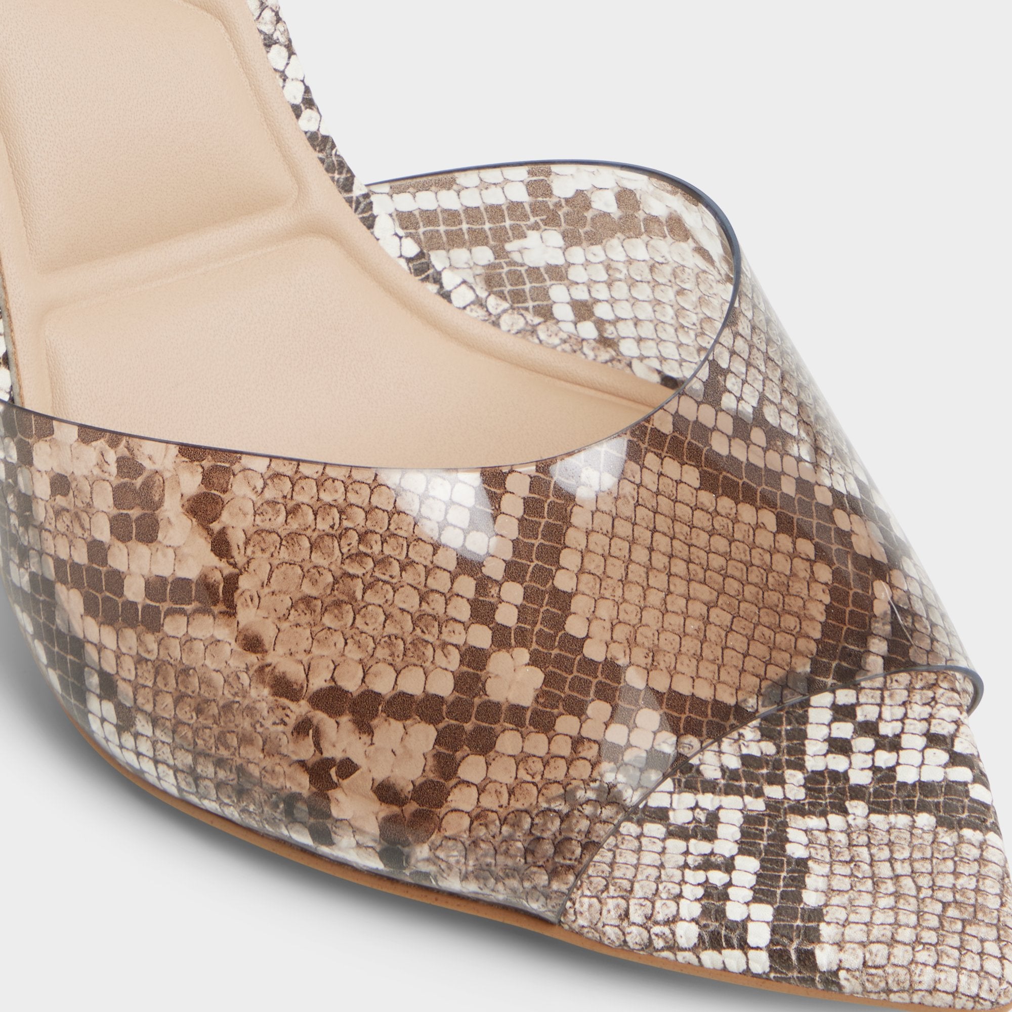 Sleek faux-snakeskin drapes a minimal mule, with a slender stiletto elevating every step and subtle padding making gliding easy from morning meetings to late-night city strolls through crowded sidewalks and sunlit avenues. Pair with cropped tailored trousers for brunch-to-boardroom polish, or slip beneath minis when rooftop cocktails drift into after-dark conversations.