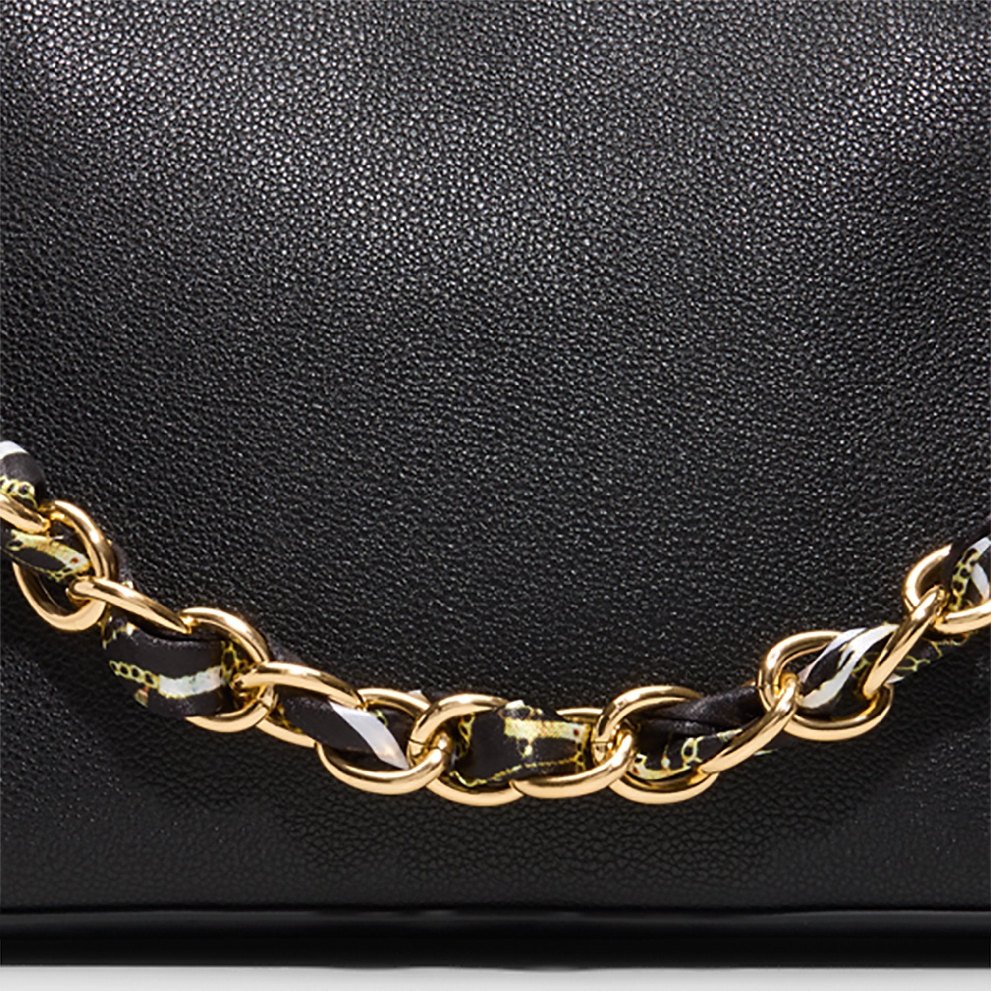 Crescent handles frame jet-black pebble leather, while a gleaming statement chain unclips to morph this bag from sculpture to shoulder carry, adding polish with a touch of downtown edge that catches eyes as you move. Carry tailored trousers for meetings or sling over a slip dress at drinks, sealing every look in confident polish.