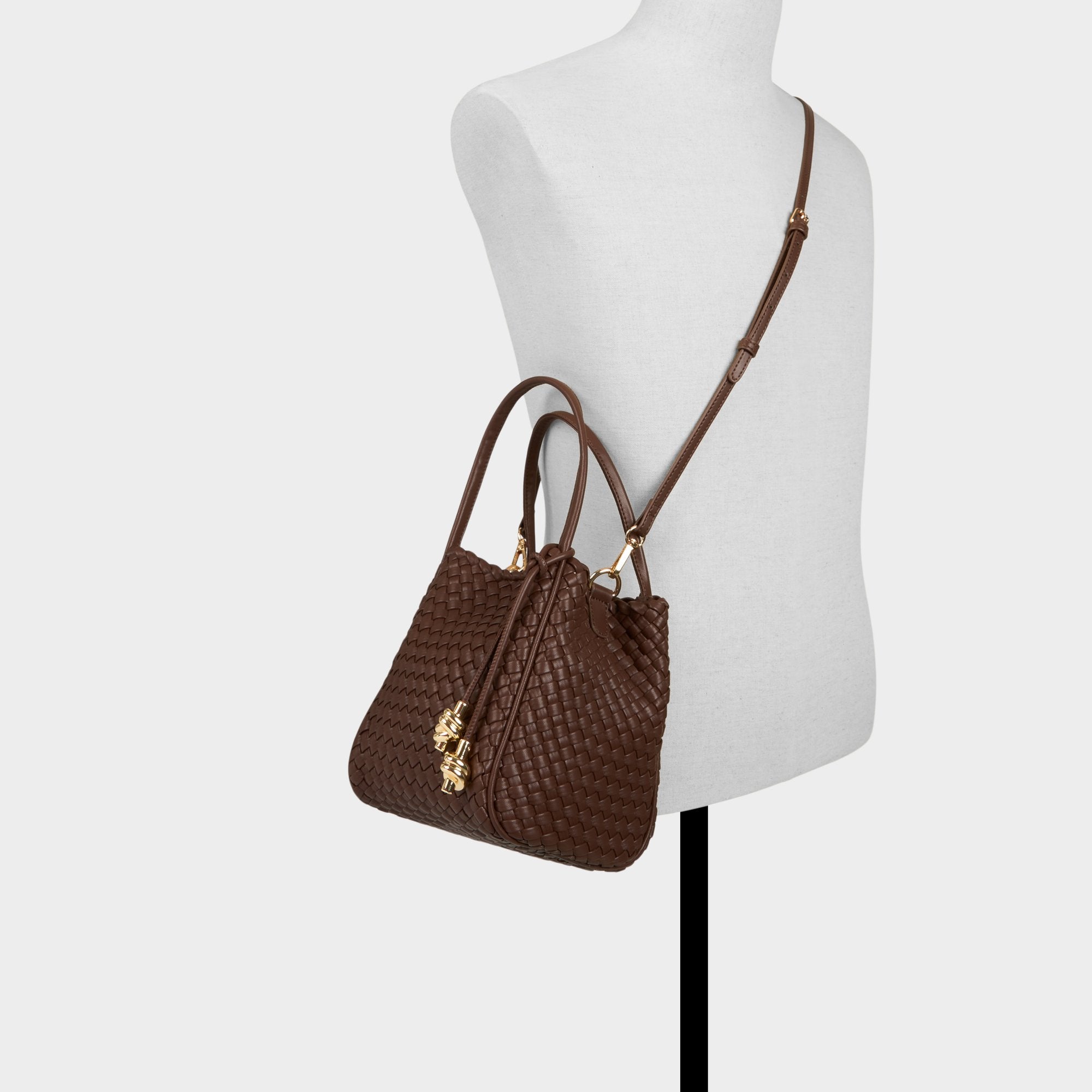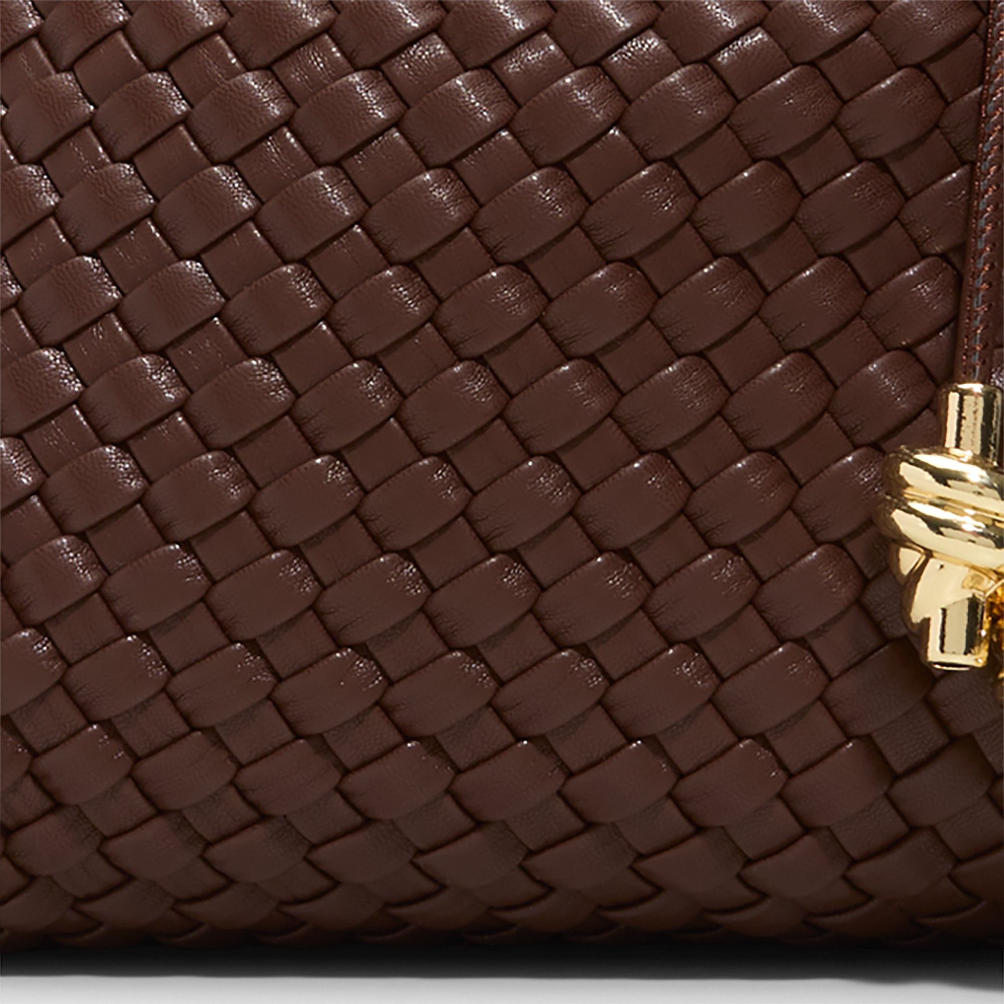 Cocoa-brown leather winds into a sculpted bucket with a tactile weave and tassels that dance, while a drawstring closure keeps daily essentials secure. Carry it with a crisp trench for coffee runs, and sling it with linen trousers for weekend getaways to finish every look with polish.