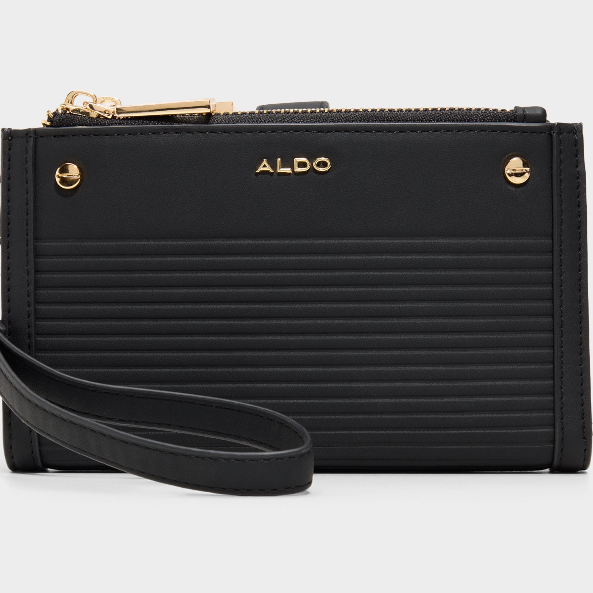 Fine ribbed panels contour this sleek black wristlet, punctuated by minimalist gold hardware, while a detachable loop strap lets you switch from hands-free city dash to polished clutch in seconds. Carry it with a slip dress for rooftop cocktails, or tuck it inside a tote for commuting days, finishing looks with effortless polish.