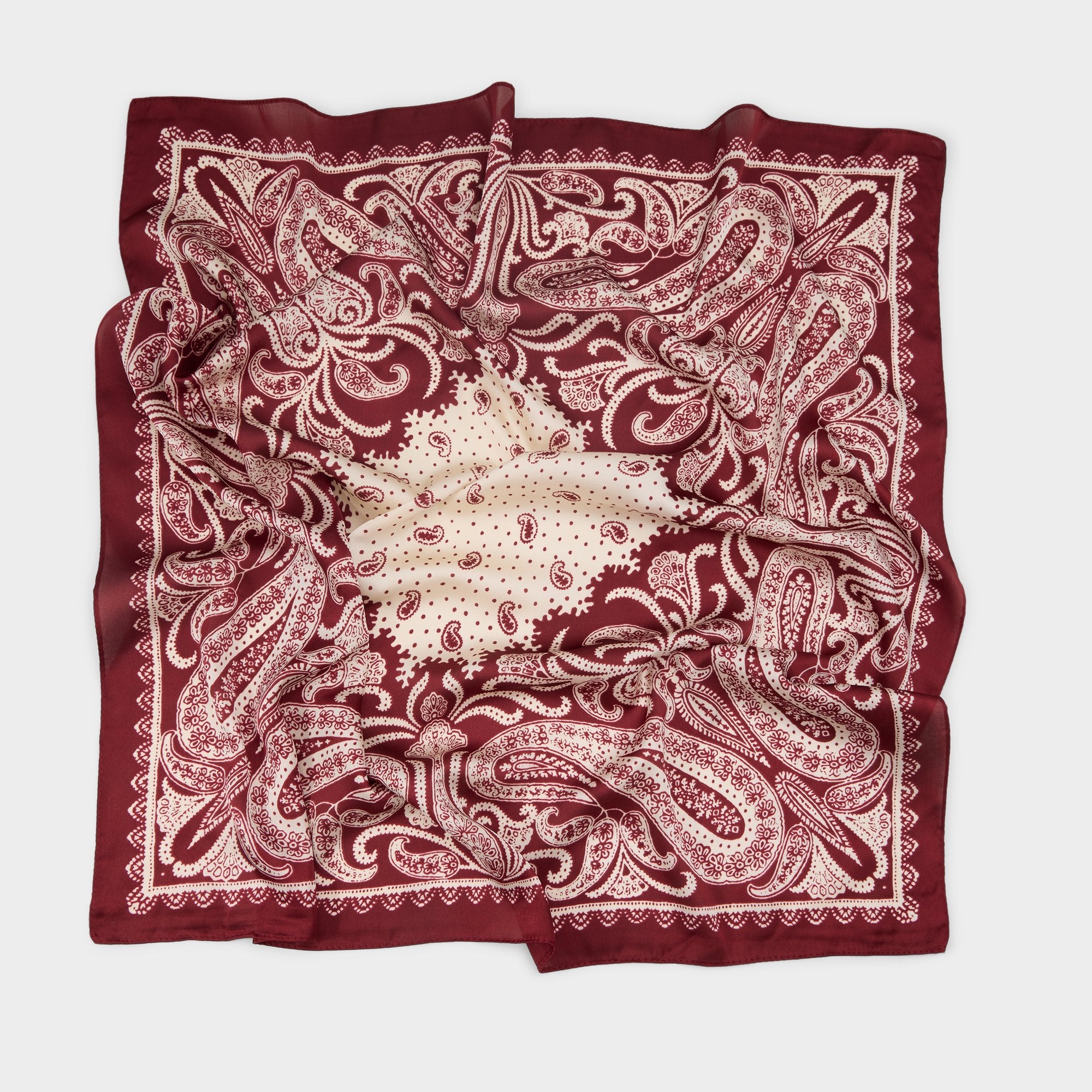 Paisley swirls flow over glossy silk, with the square cut folding gently wherever it’s knotted, bringing vintage-road-trip vibes and lightweight polish in one small accessory. Pair it with a white tee and jeans for campus runs, or tie it on a handbag handle for beach weekends, adding an edgy touch.