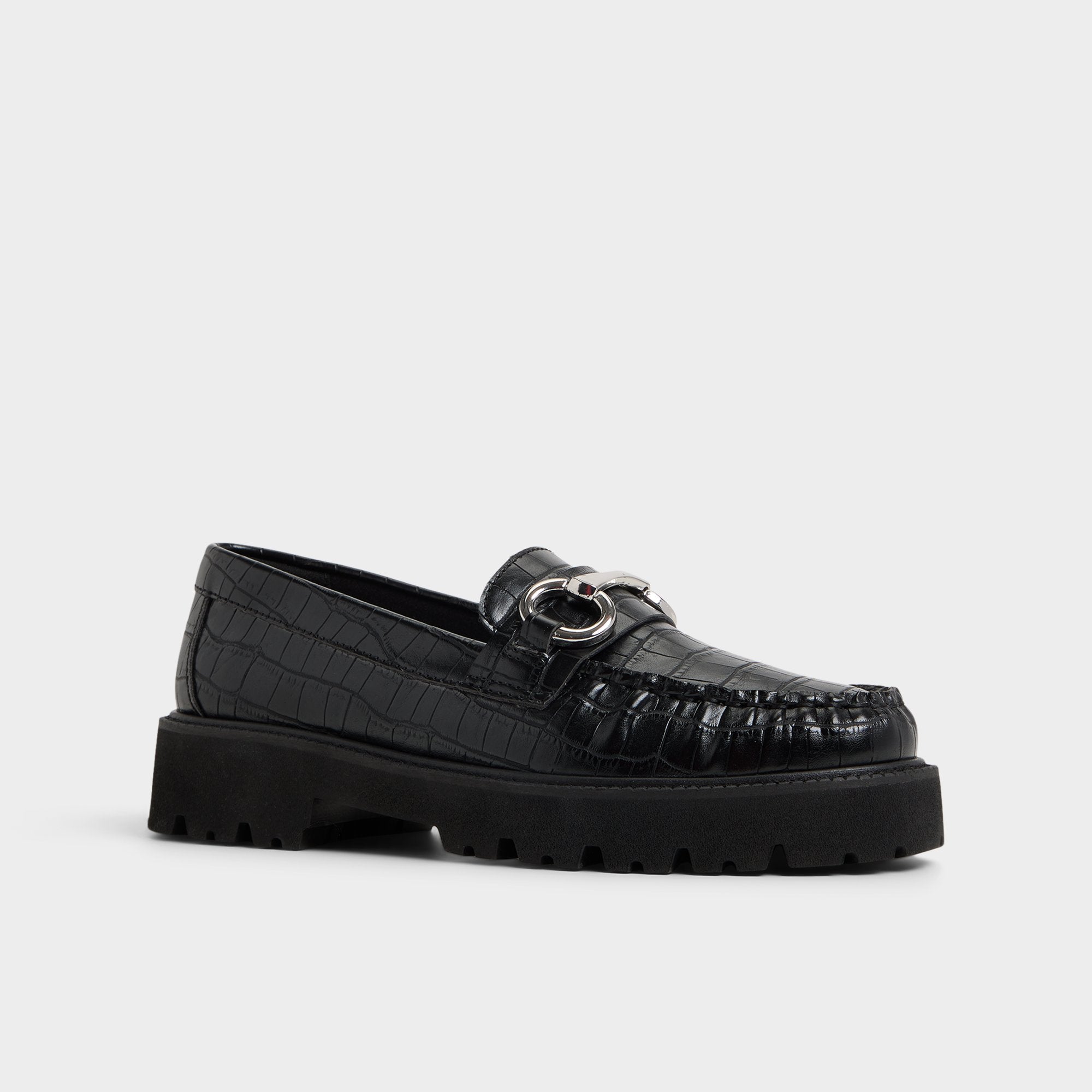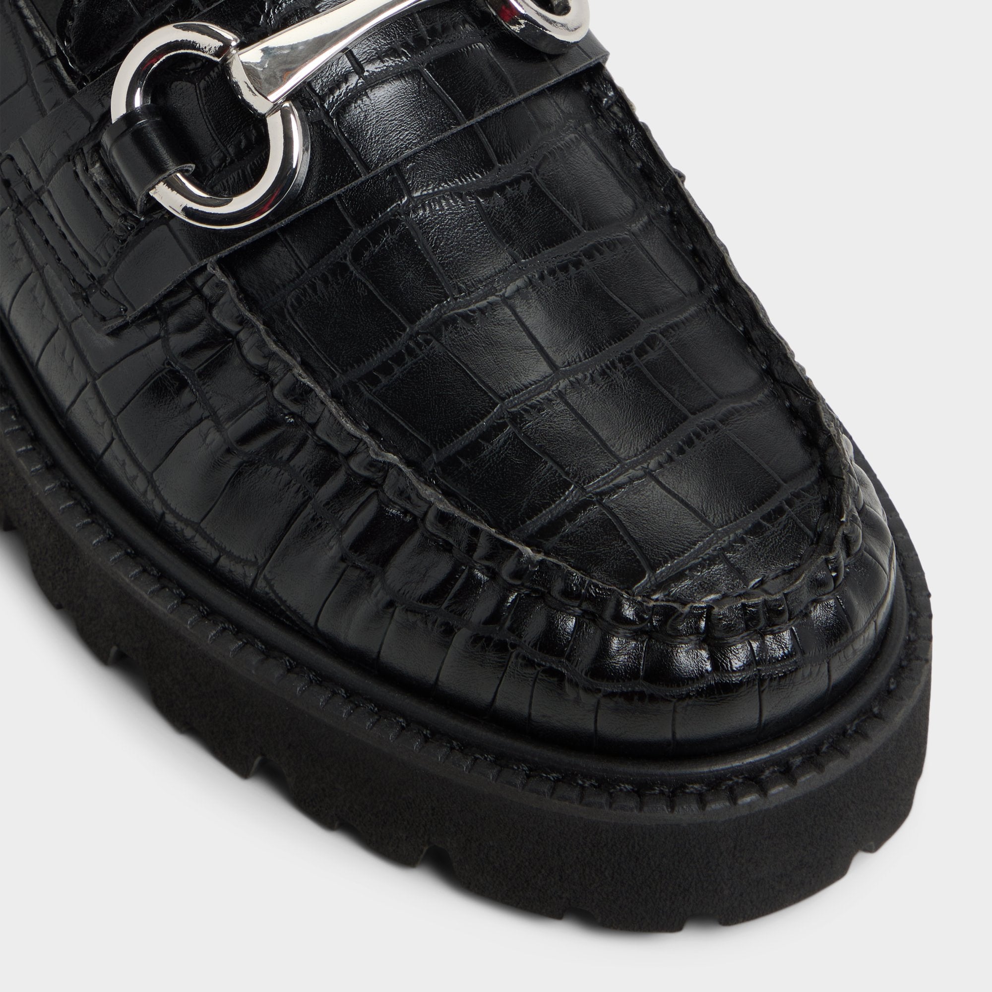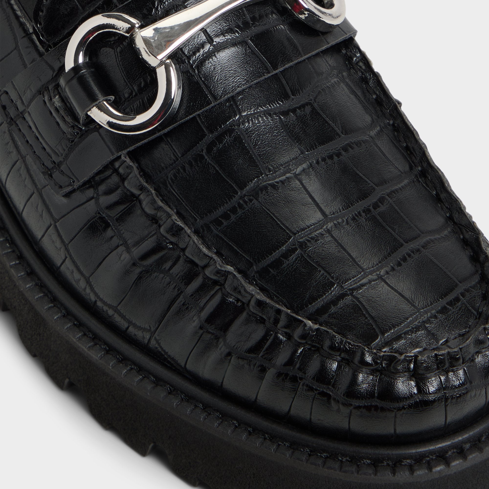 Glossy croc-embossed leather meets a chunky lug sole with a subtle metal buckle for low-key polish, delivering a slip-on that balances refined and rugged, city-ready edge. Pair with sharp trousers for presentation mornings, or swap in distressed denim when coffee catch-ups turn into record-shop strolls.