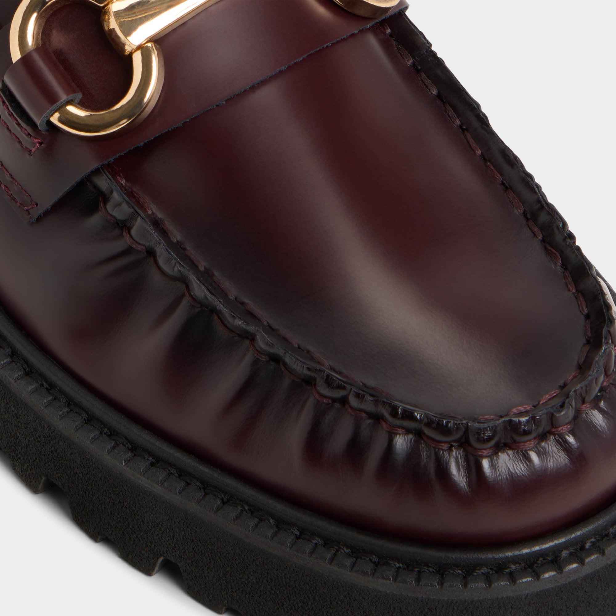 Deep oxblood leather features a clean penny upper topped with a gleaming buckle and chunky lug sole for steady strides, turning the classic loafer into an all-day city co-conspirator. Ground tailored trousers for brainstorm mornings, or swap in cuffed denim when gallery nights call for low-key polish.