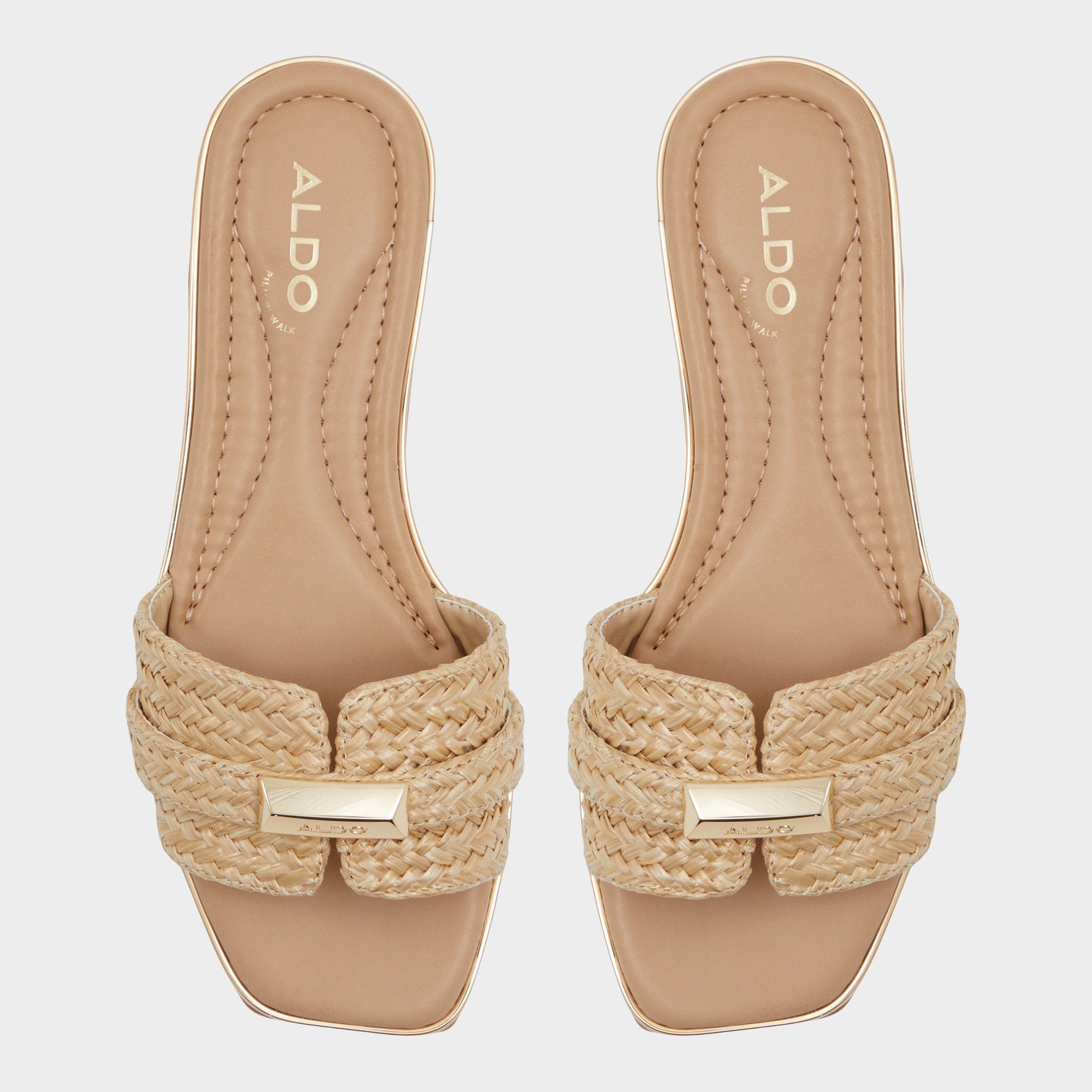 Distinguished by chic metal detailing and a modern square toe, these flat sandals were made for beaches, brunches and BBQs.