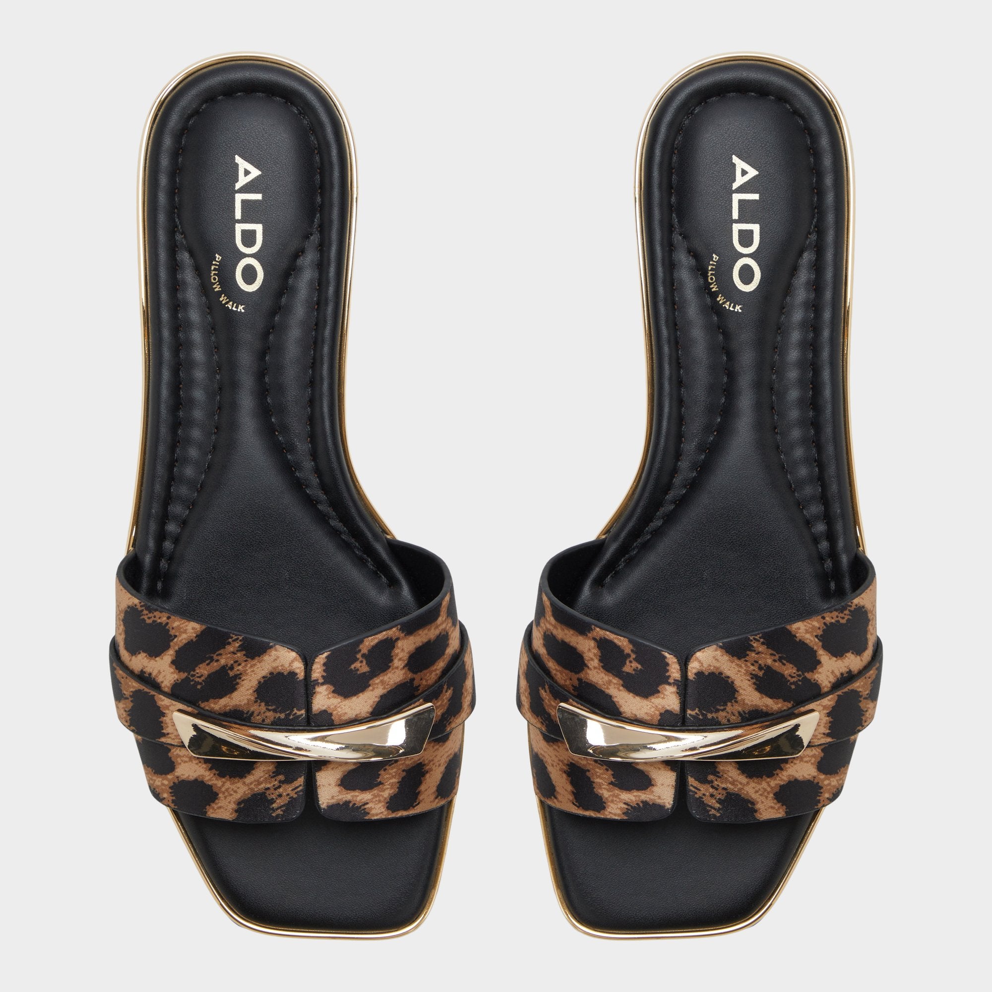 A leopard-print faux-fur strap softens into plush comfort, then sharpens its attitude with a glossy pyramid spike over a sleek square-toe slide that keeps every sun-chasing step light. Pair with cut-offs for festival strolls, or slip under a satin midi when patio cocktails evolve into rooftop playlists.