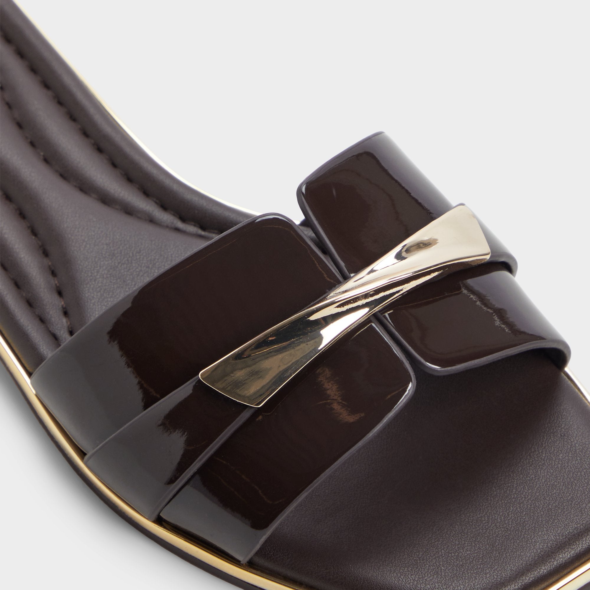 Lustrous brown leathers trace a quiet arc over a square sole, braided straps crowned with glimmering accents that catch the light with every step. Pair with linen shorts for market mornings, or slip beneath a flowy midi when city evenings invite easy, confident daytime moments.