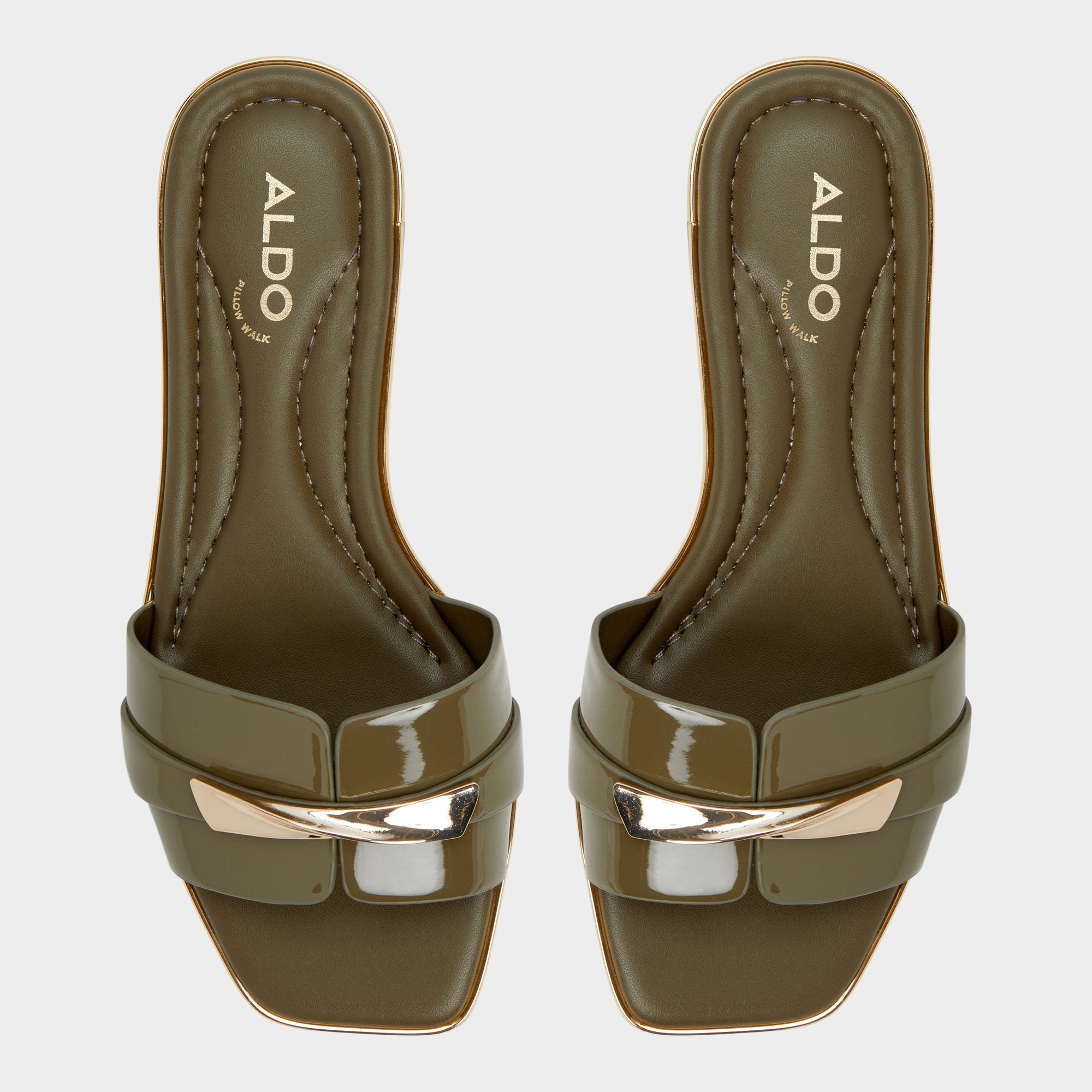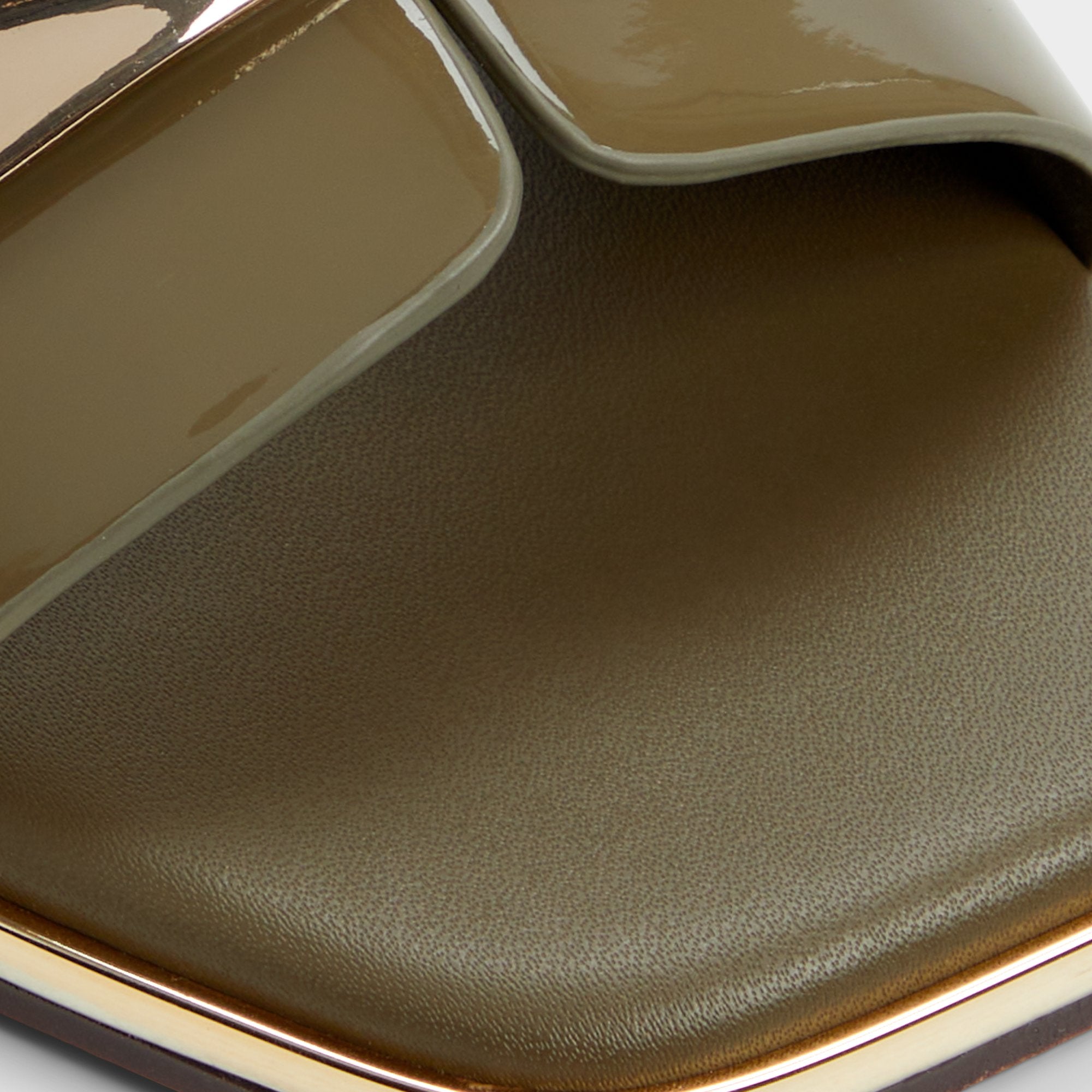 Sunlit patent leathers trace bold, wide bands trimmed with gold-tone hardware, turning a laid-back sandal into a statement of evening-ready polish and sun-drenched confidence for city strolls and rooftop sunsets. Pair with cropped linens for market days, or slip under a flowy midi for sunset cocktails and street-style gallery nights.
