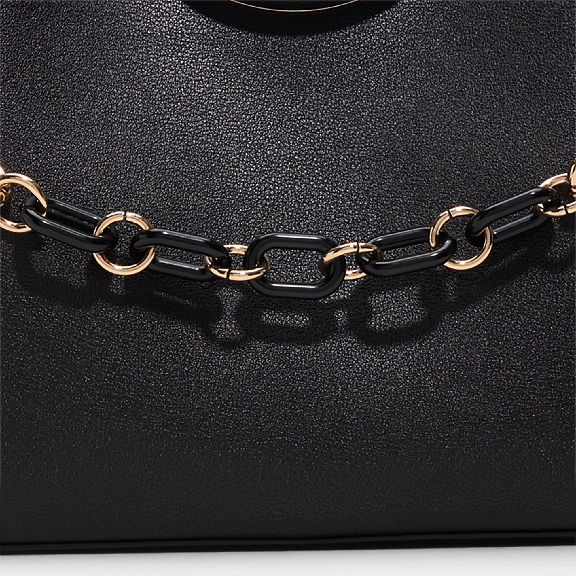 Sculptural ring-handle in glossy gold frames this structured leather carryall, while a detachable curb-chain strap lets you switch from top-handle to shoulder carry in a heartbeat for city days and after-hours adventures. Carry it with tailored blazers for client catch-ups, or sling it over satin slips for rooftop drinks to finish the look.