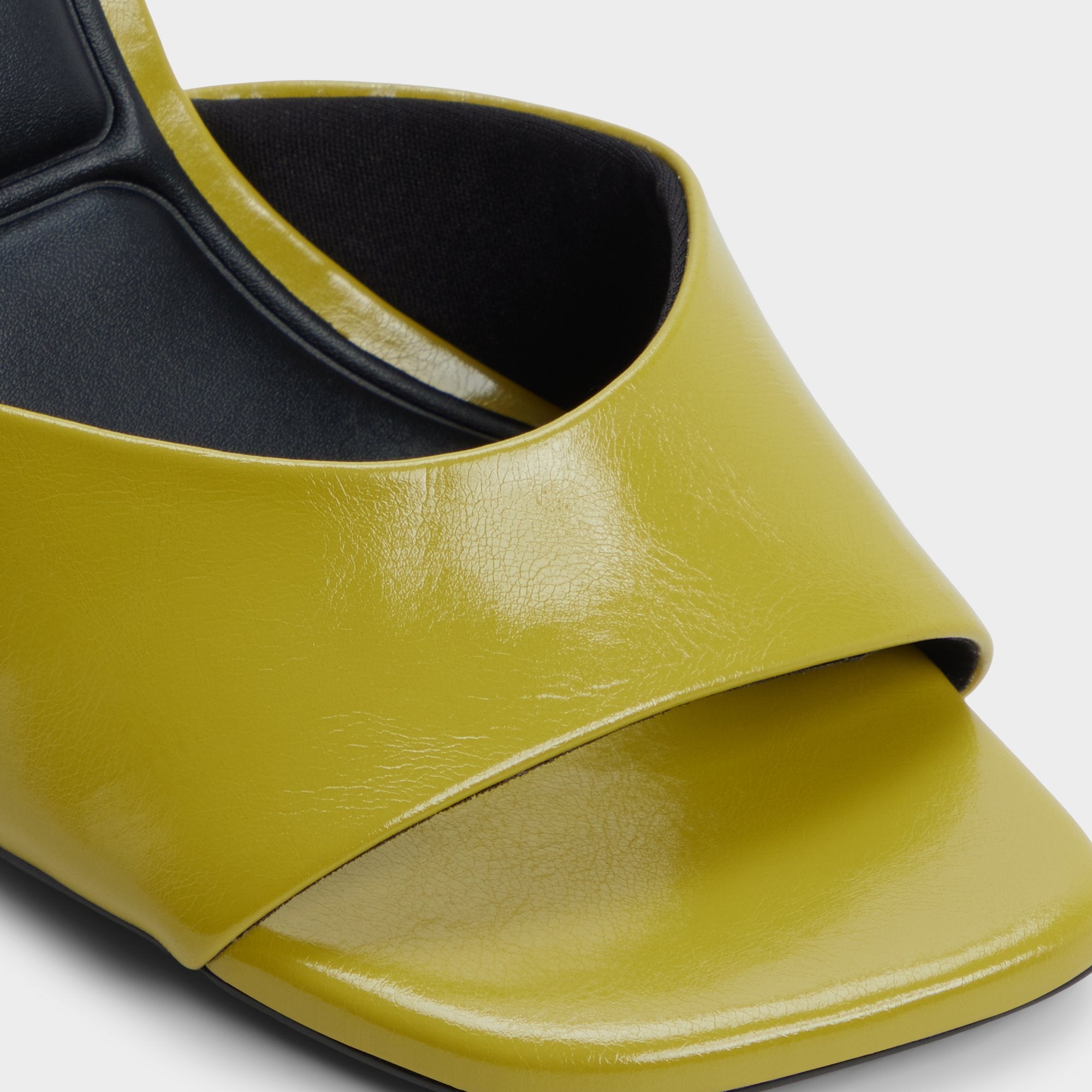 Liquid-shine lime patent leather catches city lights as a sculpted flared-stiletto heel lifts every step, while a square toe keeps the silhouette modern and easy to wear from early meetings to after-hours strolls. Pair with tonal suiting for presentation mornings, or swap in a little black dress when twilight rooftops call.