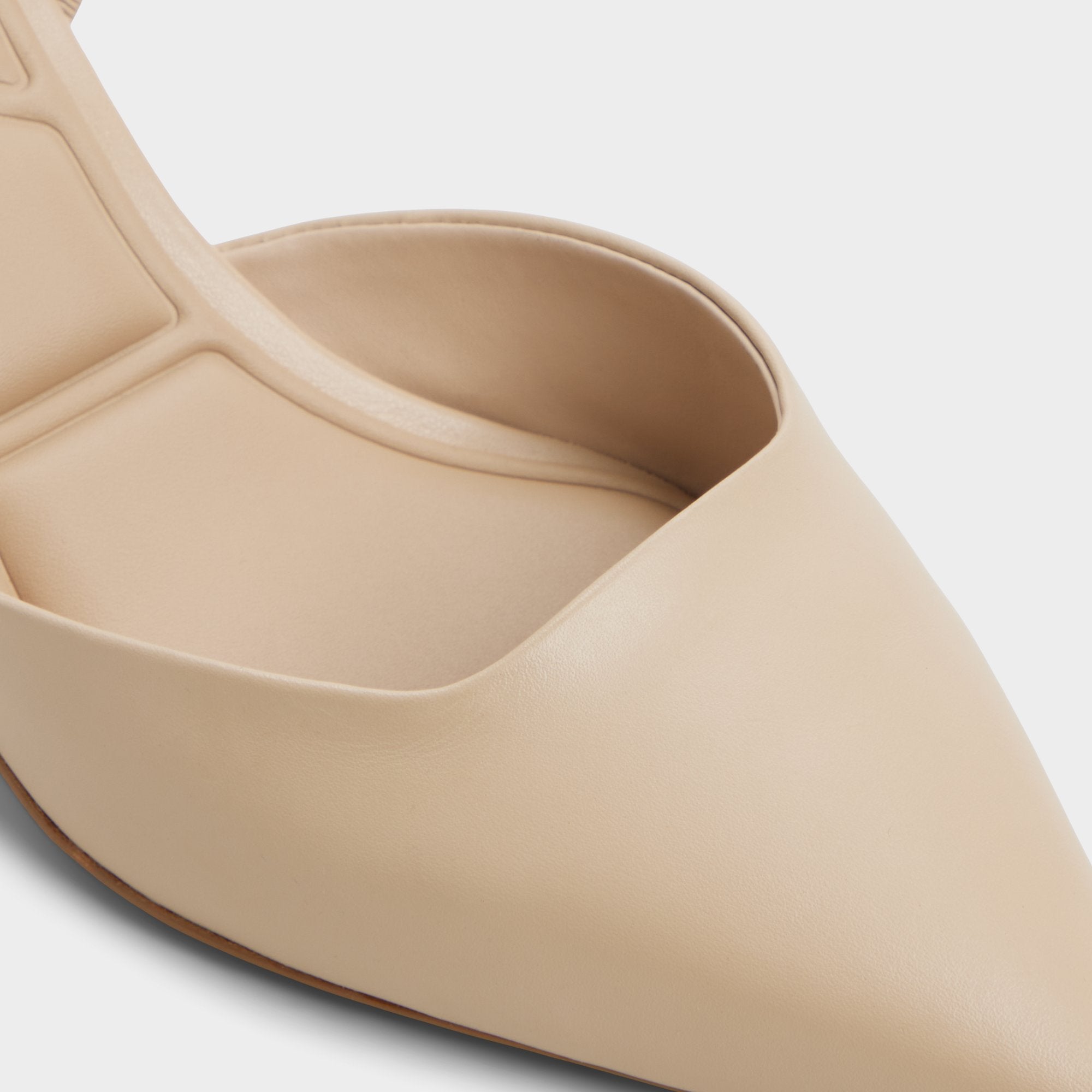 Supple beige leather forms a sleek slingback with a pointed toe, and the kitten heel offers just enough lift for confident meetings and graceful cab hops. Pair it with cropped suits for pitch days, or slip beneath a satin midi when gallery openings flow into cocktails.