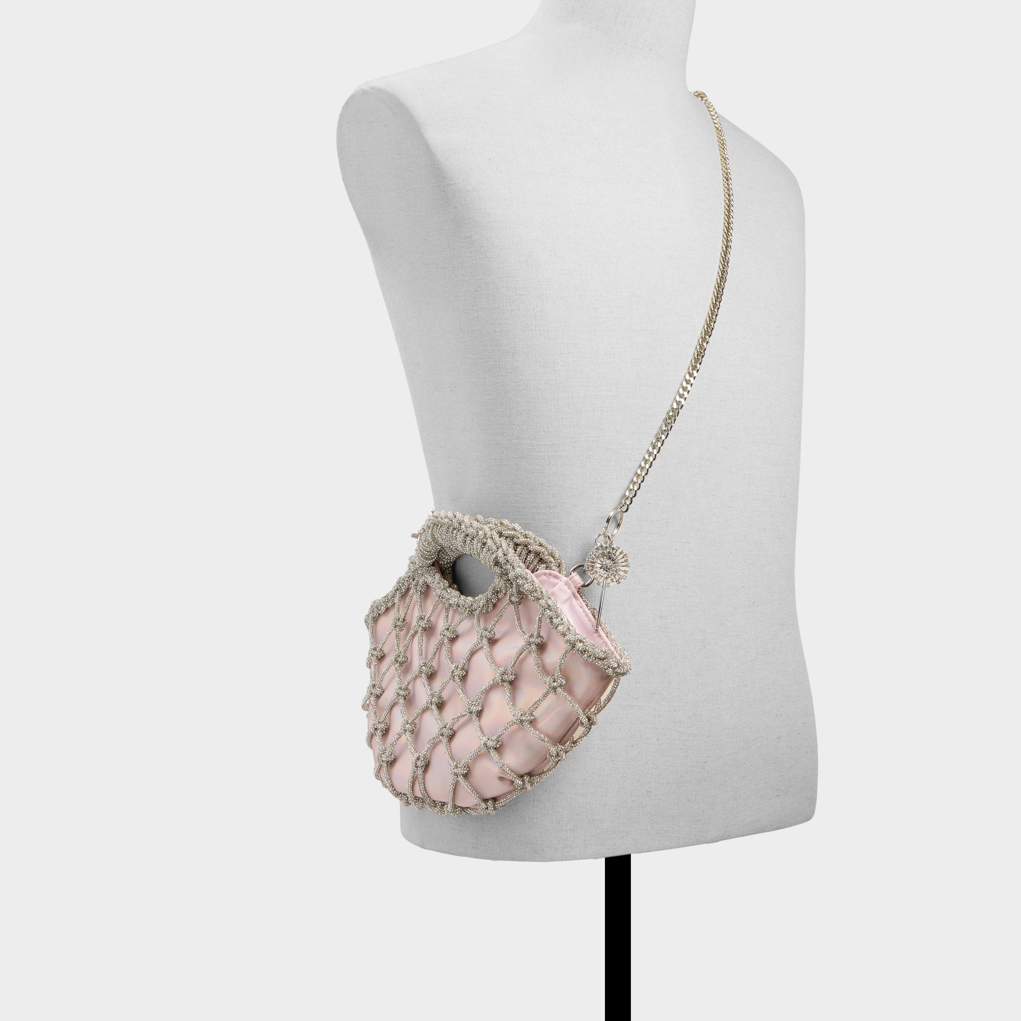 She is perfect in pink. Filled with charm, this Glinda-inspired textured handbag is complete with silver weaving atop a spellbinding pink satin. Grab her by the top handle and float over Oz in style.