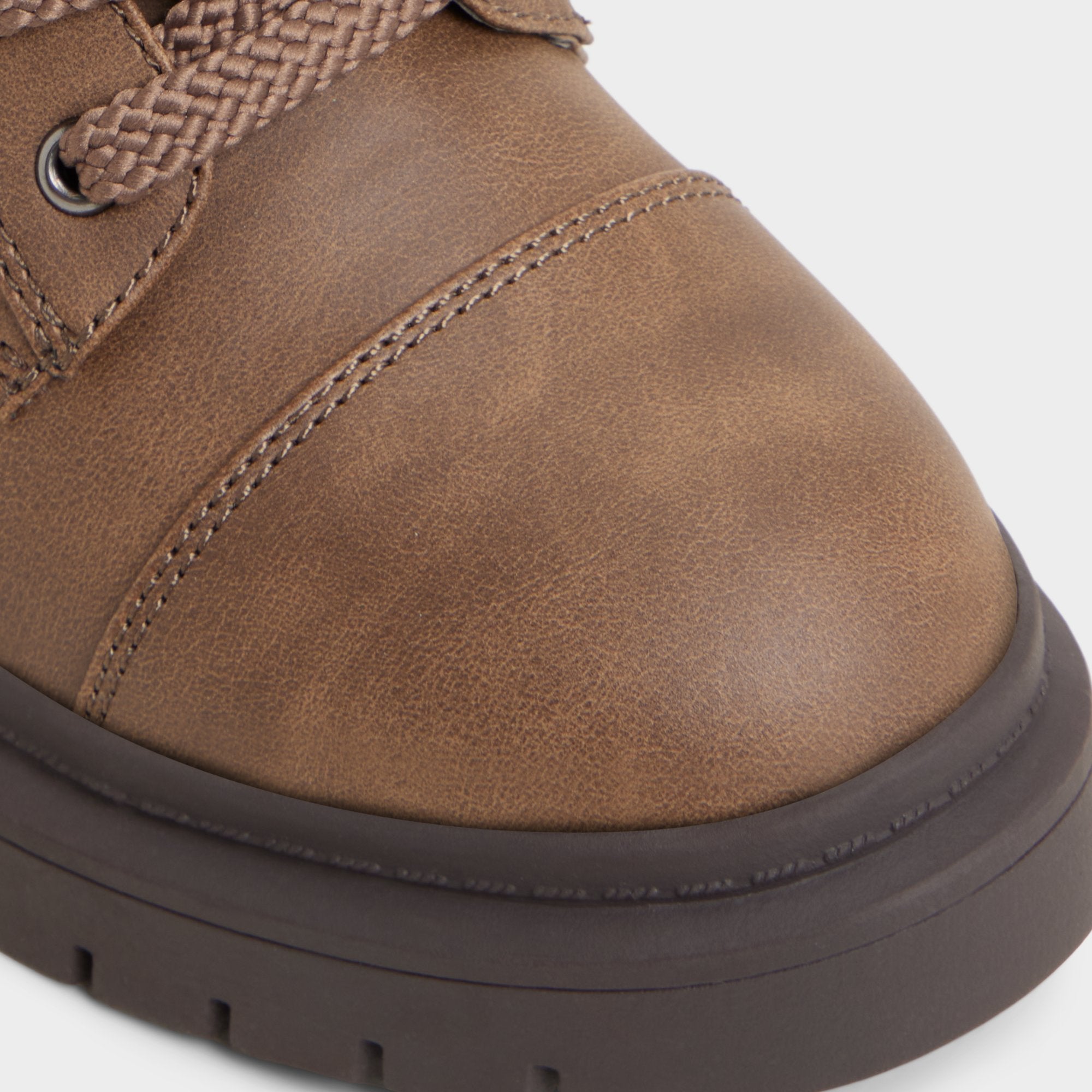 Weathered faux leather meets a chunky lug sole in a combat boot ready for impromptu detours, finished with metal eyelets and a cushioned interior that lets you wander longer than expected. Team with cuffed jeans for gallery days, or lace up alongside a slip dress when late-night gigs call for edge.