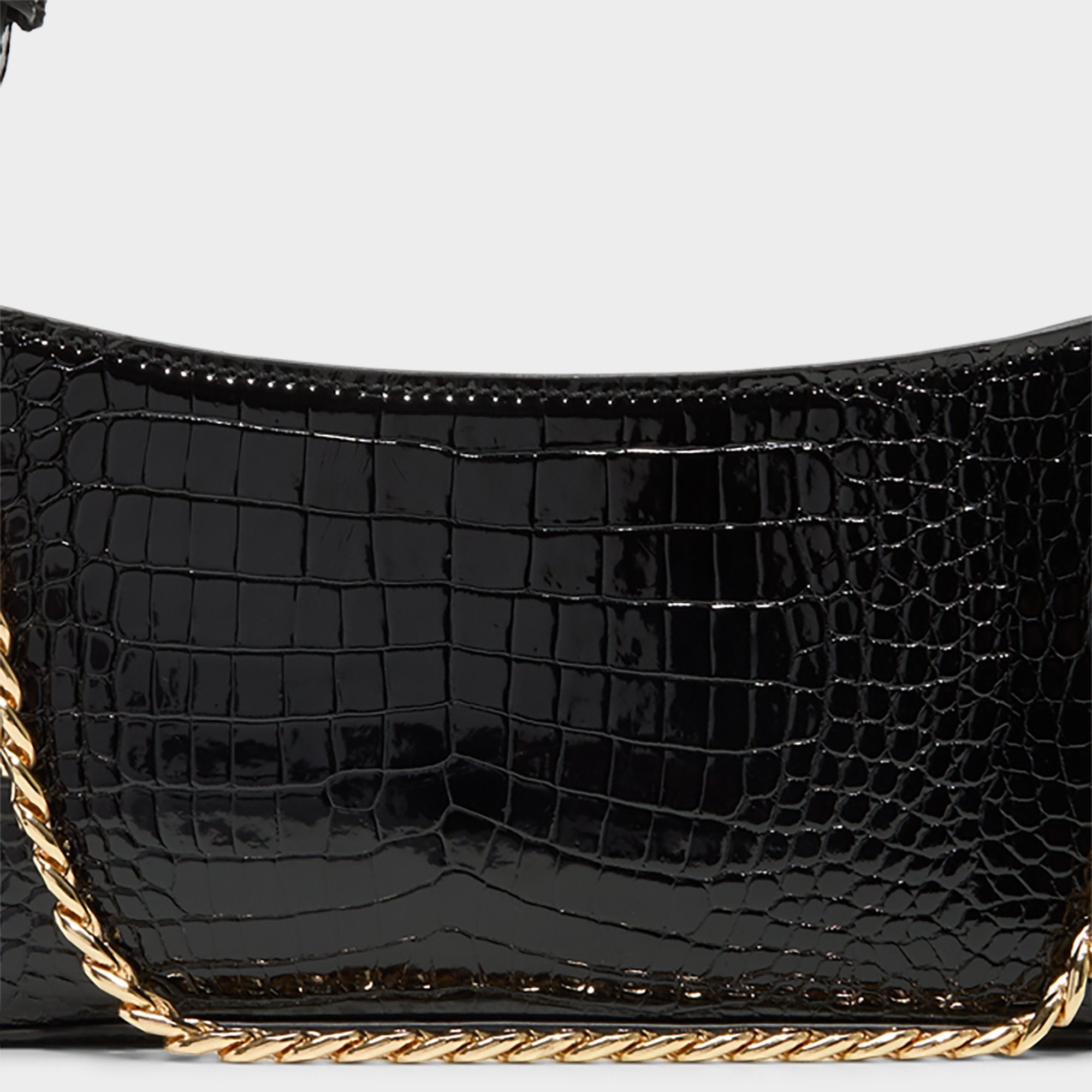 Glossy croc-embossed leather catches the light along a sleek baguette silhouette, while an interchangeable handle—thanks to a detachable gold chain—lets you shift from shoulder carry to hands-free ease in a heartbeat. Sling it with silky dresses or tuck under your arm during late-night food runs.