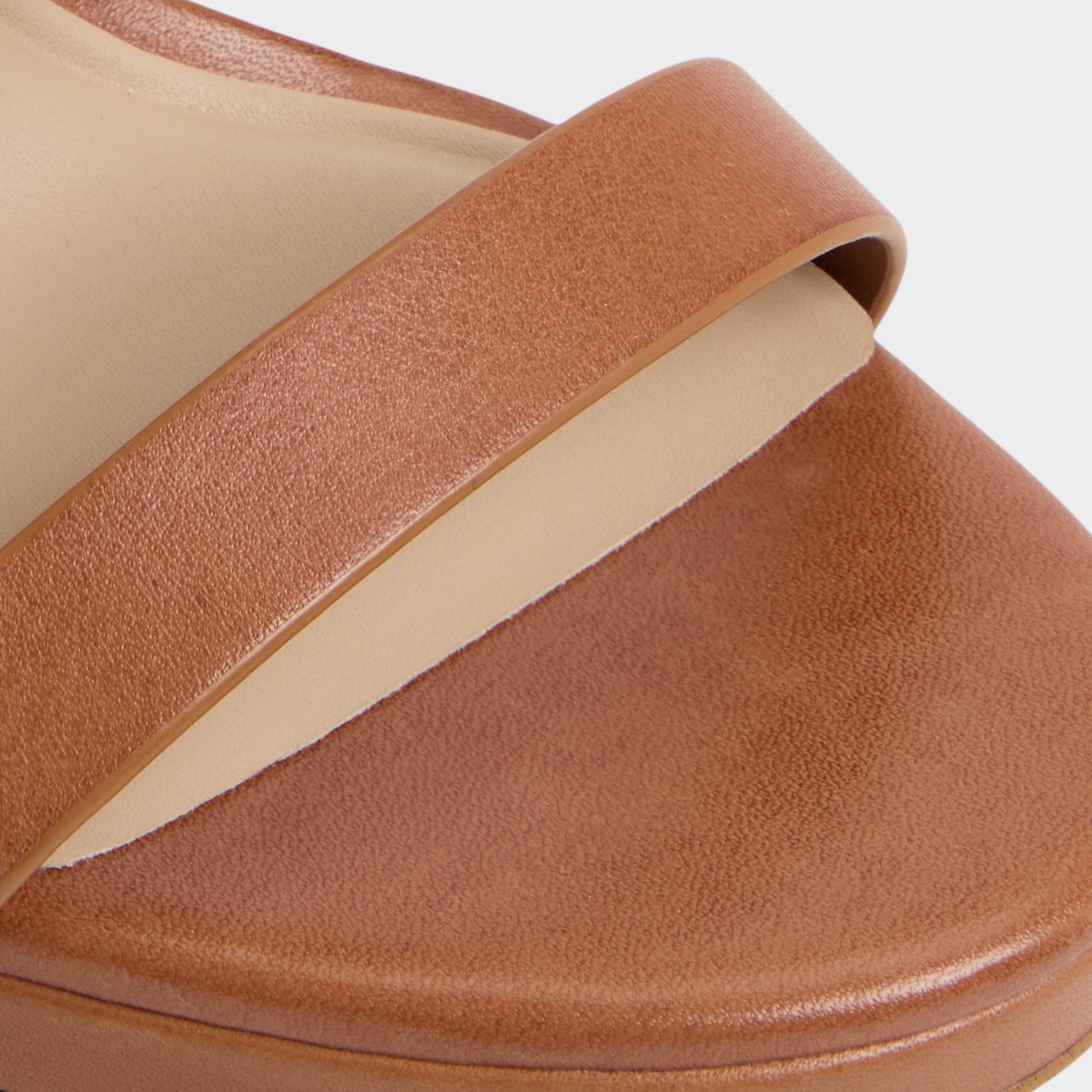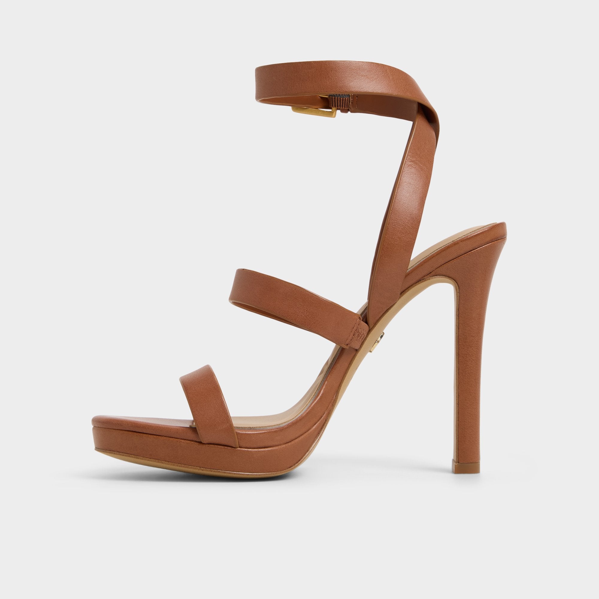 Brown leather straps climb the foot as a sky-high stiletto meets a slim platform, delivering a leg-lengthening silhouette with cushioned steps that glide through city detours. Pair with tailored shorts for rooftop nights, or ground a bold jumpsuit at weddings demanding drama and unforgettable entrances.