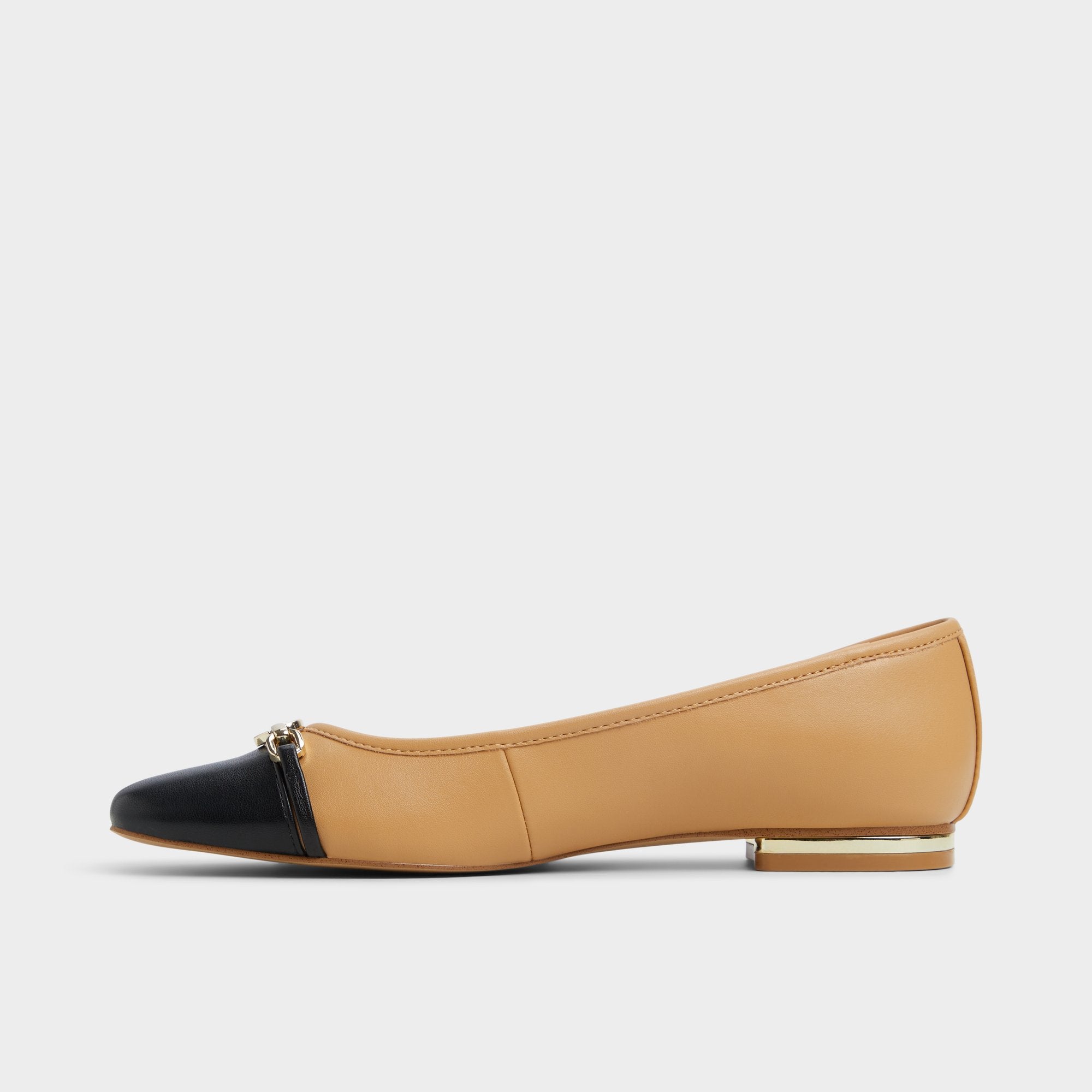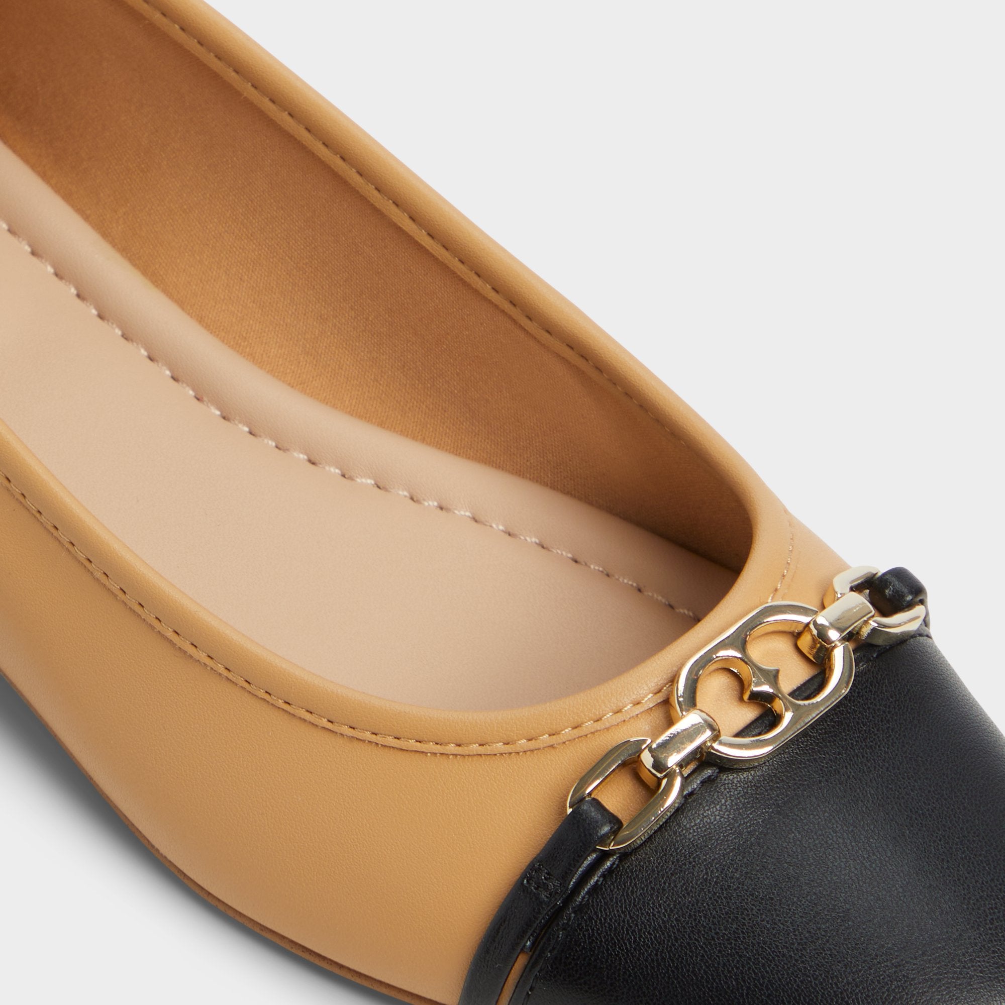 Contrasting black cap toe, crowned by a gleaming chain charm, gives this buttery leather flat a Parisian vibe and a softly lined, low heel for all-day comfort. Pair with cropped cigarette trousers for client catch-ups, or ground a pleated midi when gallery openings stretch past sunsets.