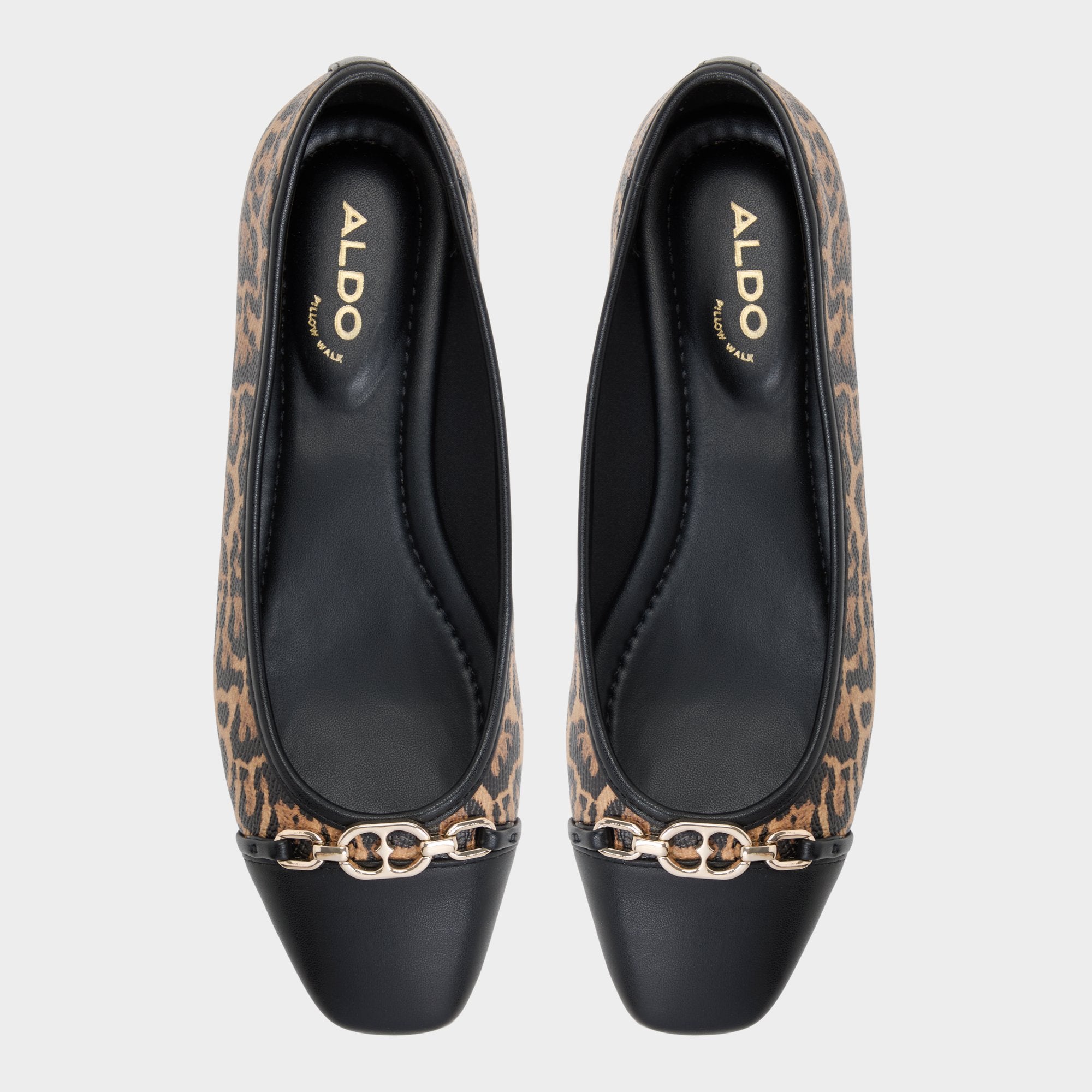 Chic leopard-textured uppers meet a smooth black cap toe trimmed with gold, adding downtown flair to this ballet flat while cloud-soft padding keeps you steady through spontaneous detours. Pair with cropped trousers for coffee catch-ups, or swap in a satin slip dress when gallery openings glide into cocktail hours.