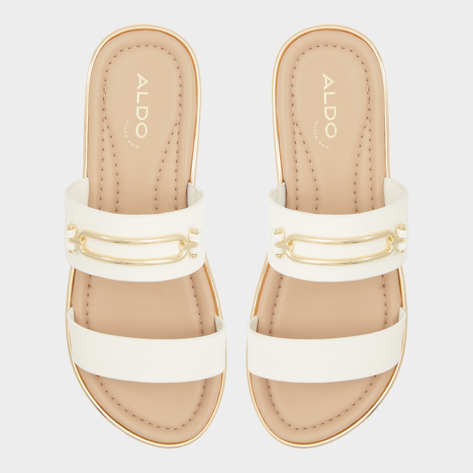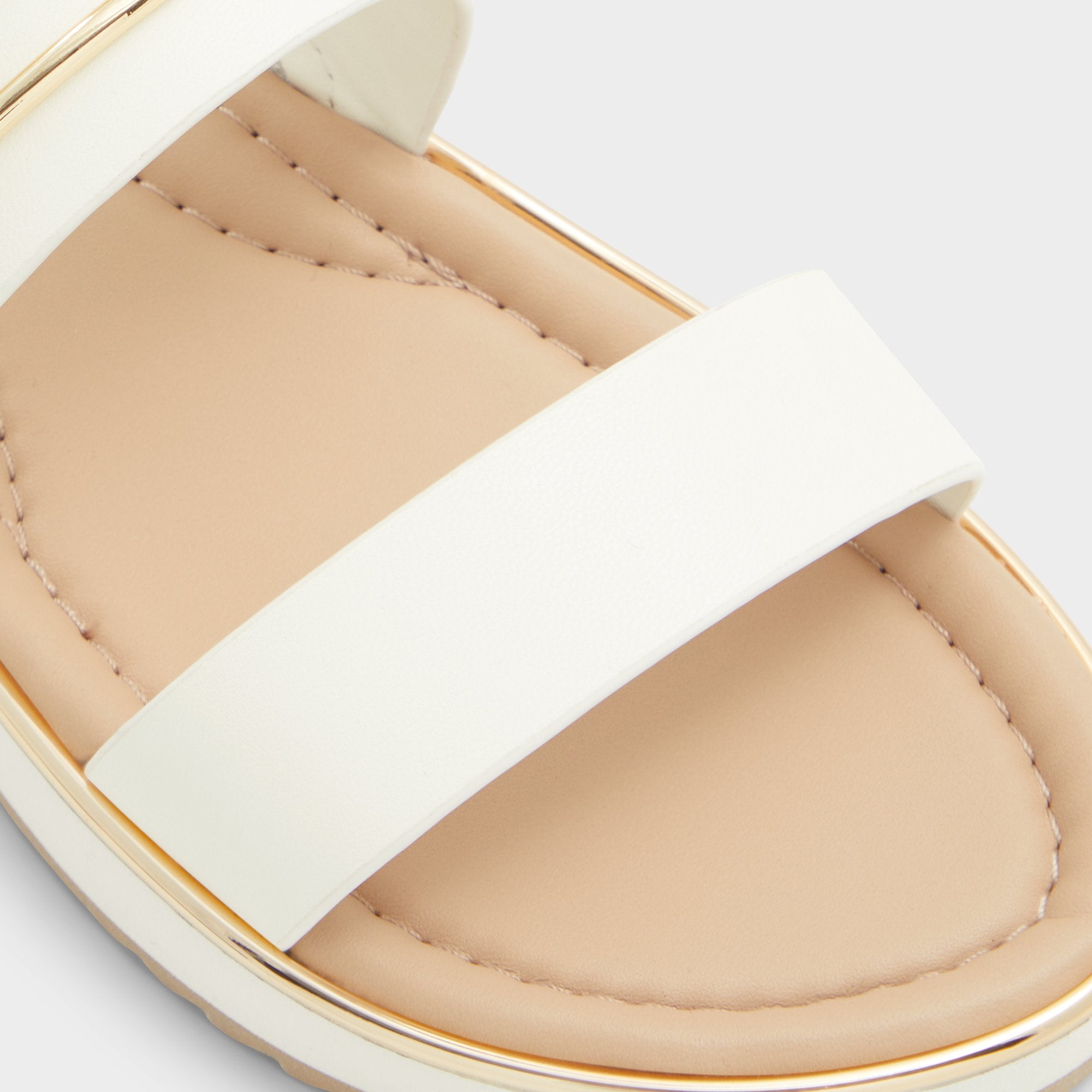 Sun-bleached white straps frame a laid-back, polished silhouette, riding on lightly ridged soles that cushion each step and keep you moving with ease from gallery Saturdays to city coffee runs. Pair with linen shorts for market strolls, or slide under a floaty midi when rooftop cocktails drift into starry conversations.