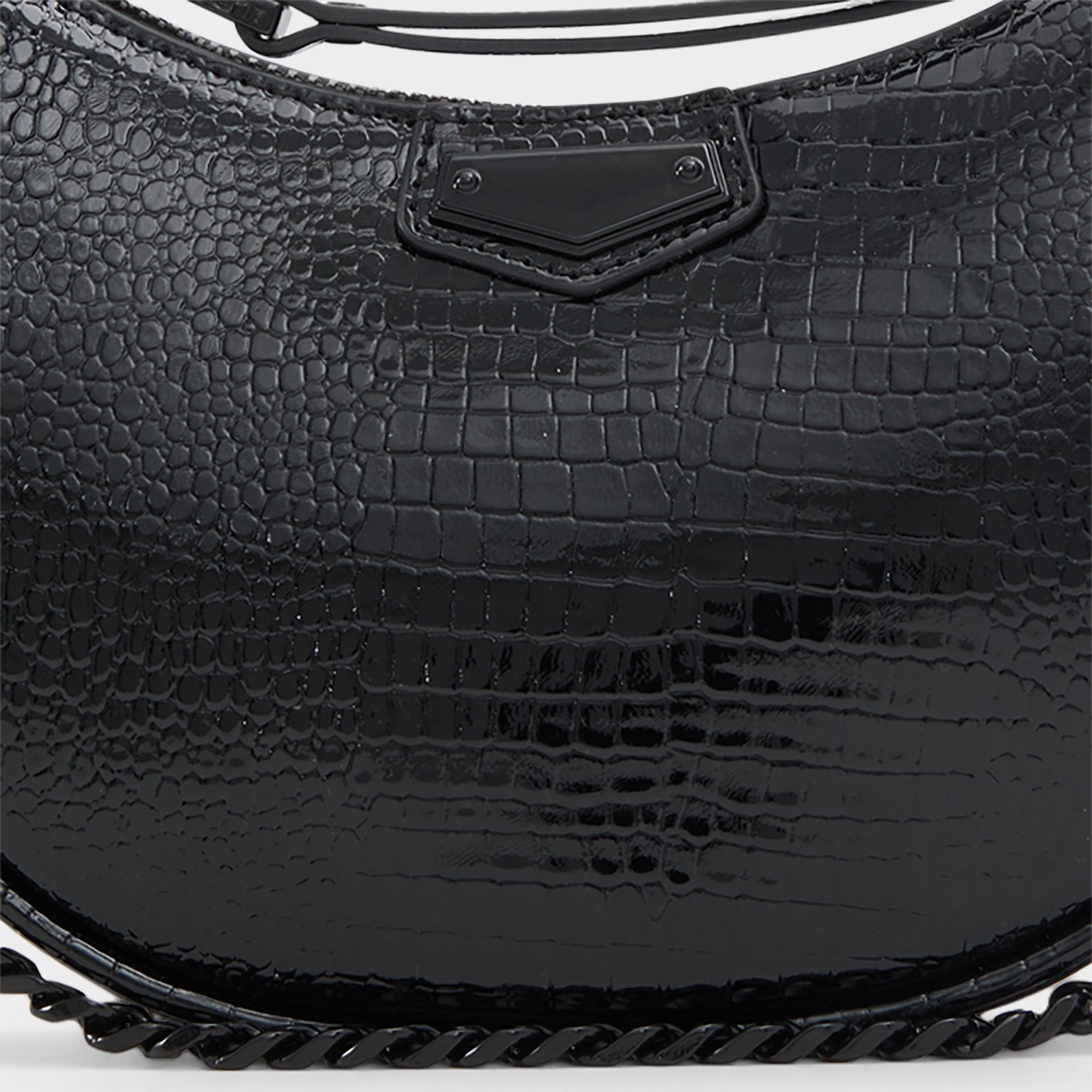Presenting the ultimate mini shoulder bag! Complete with chic metal hardware, this snakeskin embossed bag is the perfect everyday accessory.