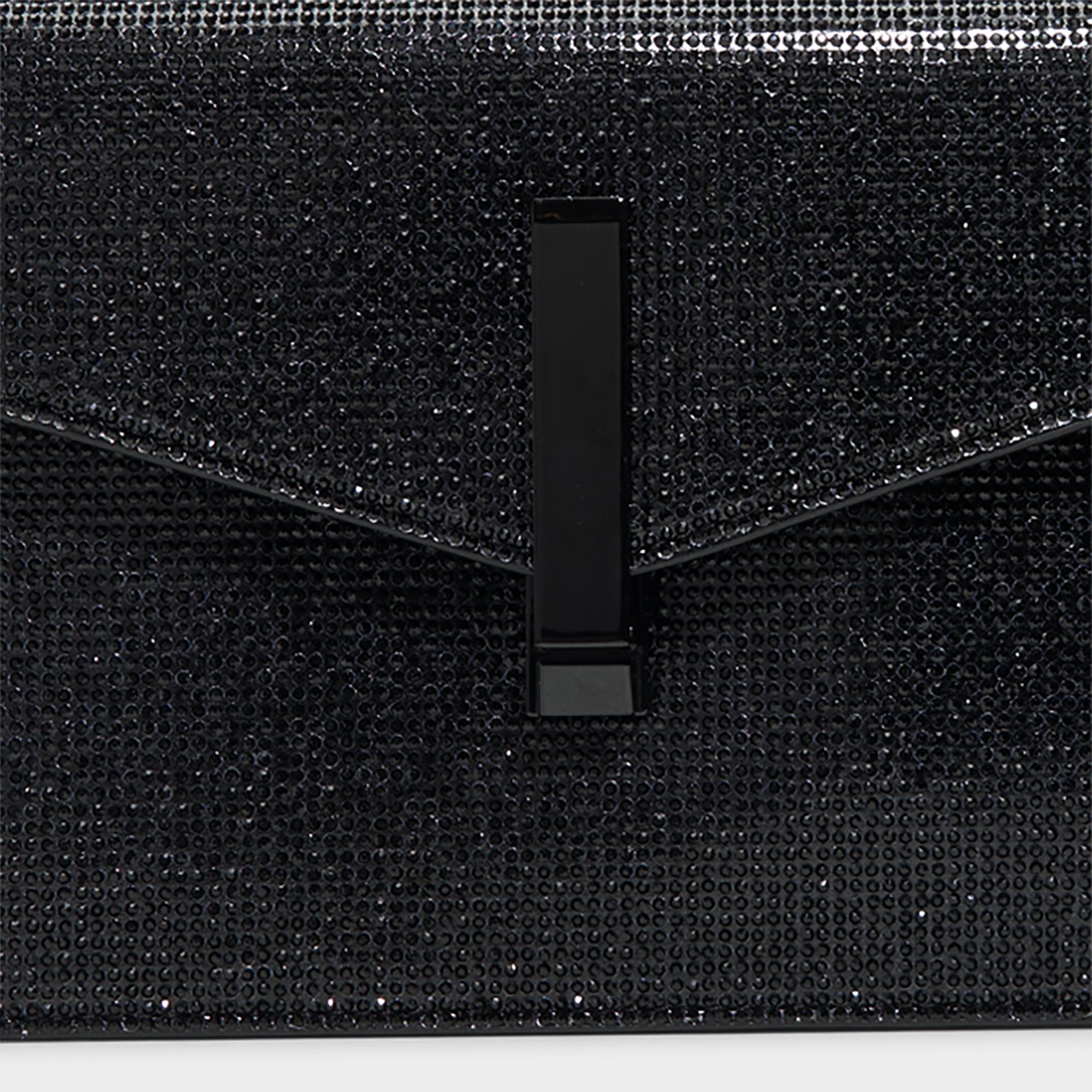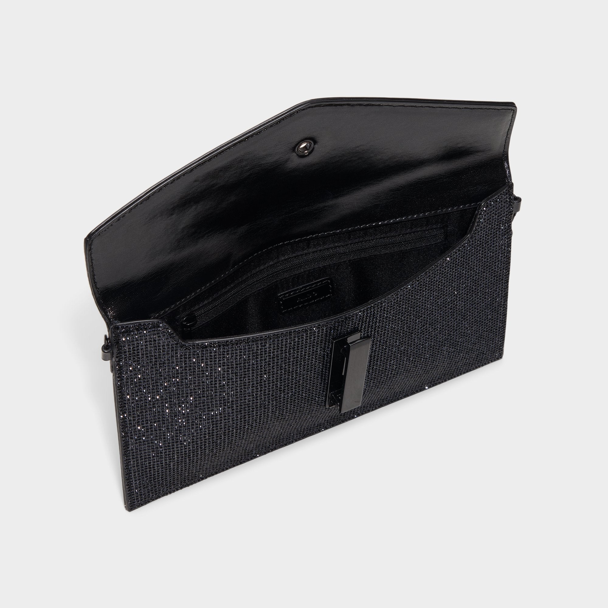 Midnight-sparkle micro beads cover this sleek envelope clutch, glinting under club lights, while a minimalist black bar clasp keeps cards and gloss secure. Clutch it with a satin slip for gala nights or tuck it under an oversized blazer and denim for rooftop hangs to add low-key shimmer.