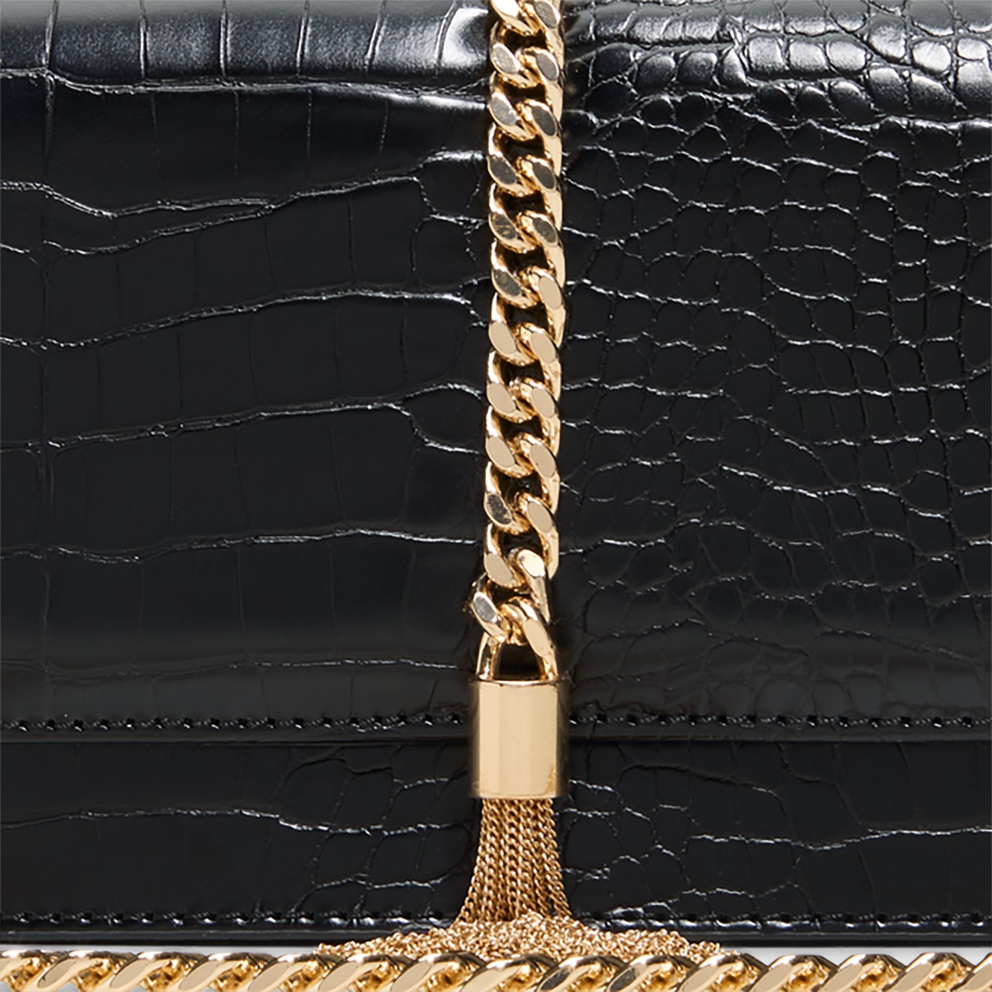 High-gloss croc embossing pairs with a gold chain, making this compact crossbody perfect for evenings out, while the turn-lock flap keeps essentials secure. Sling it over a slip dress for rooftop dates or pair it with denim on coffee runs for a touch of shine.