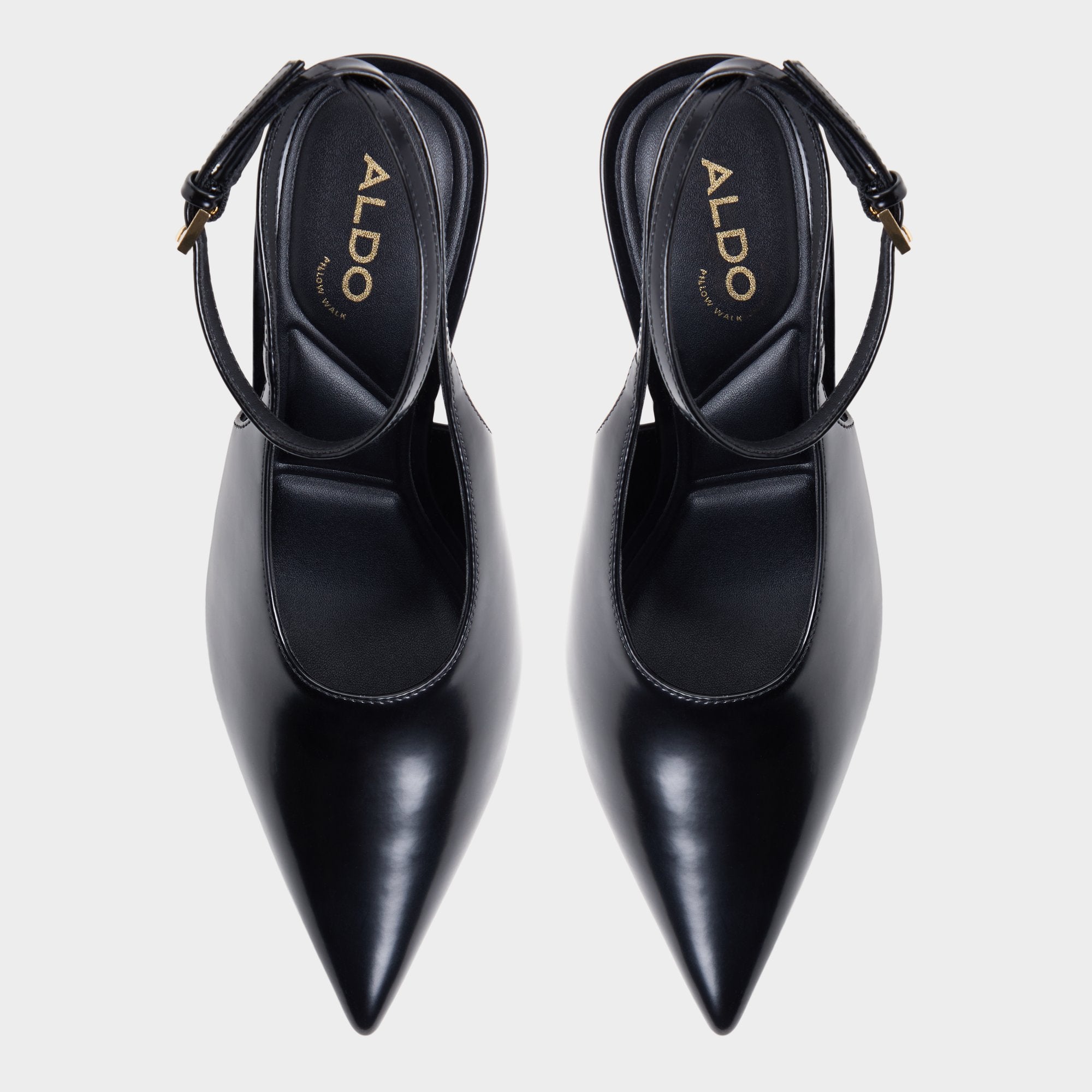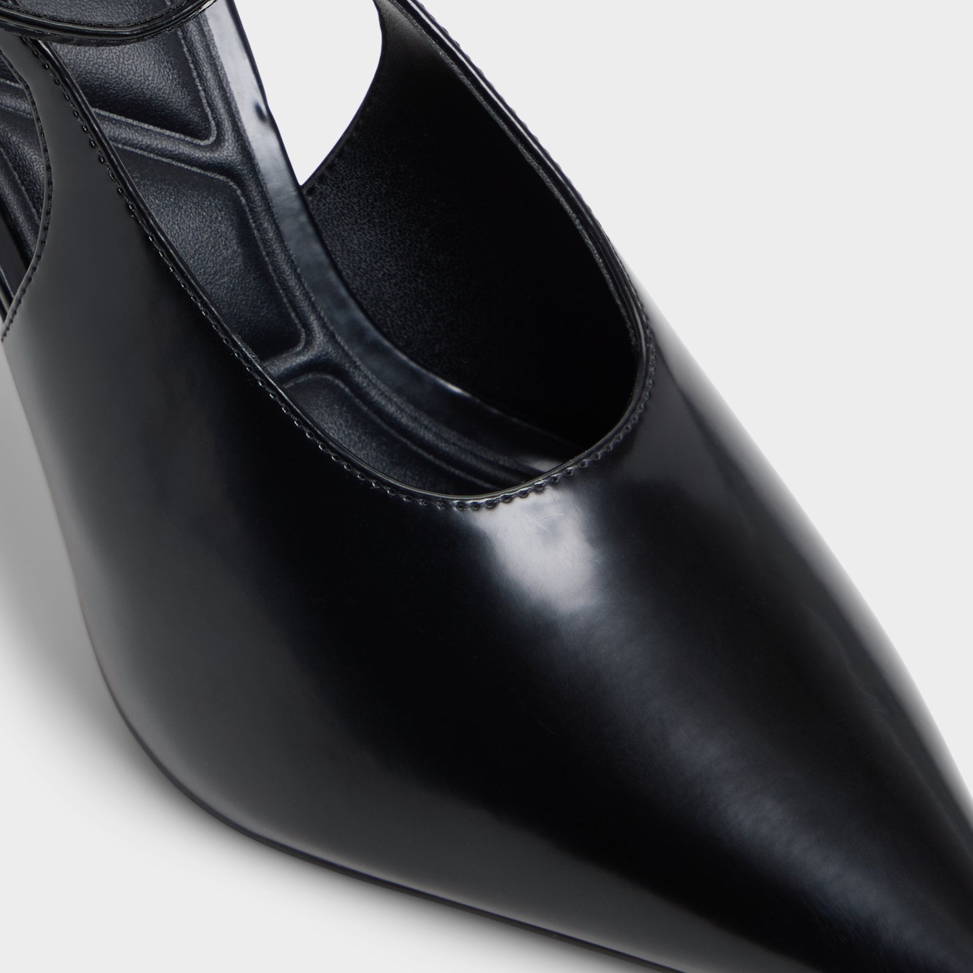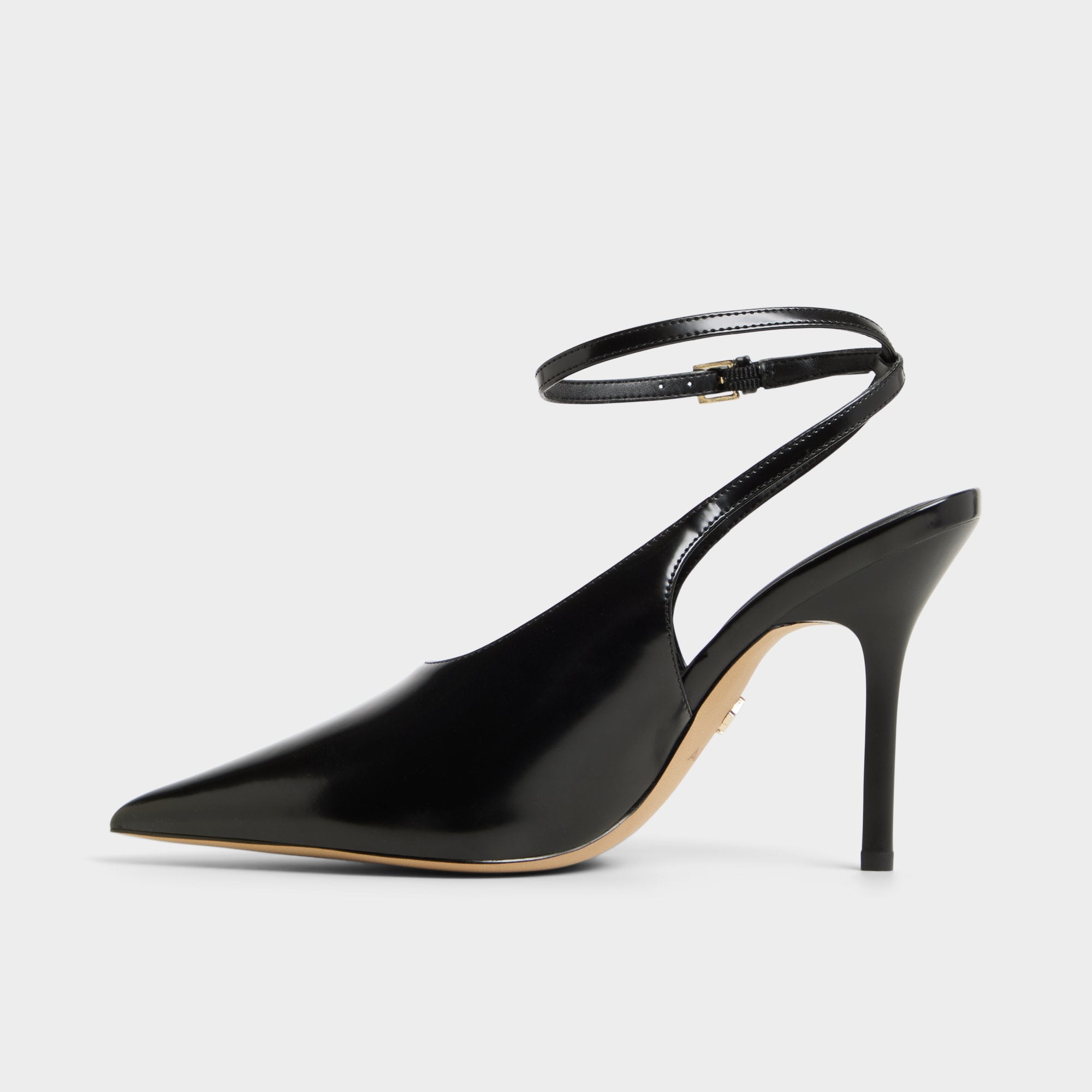 Sleek black leather hugs razor-point toes as slingback stilettos and slim ankle straps carve tall, confident lines, giving every step a moonlit hush on polished marble. Pair them with tailored trousers for power-lobby mornings, or slip on satin slips for candlelit dinners that slide into rooftop nightcaps.