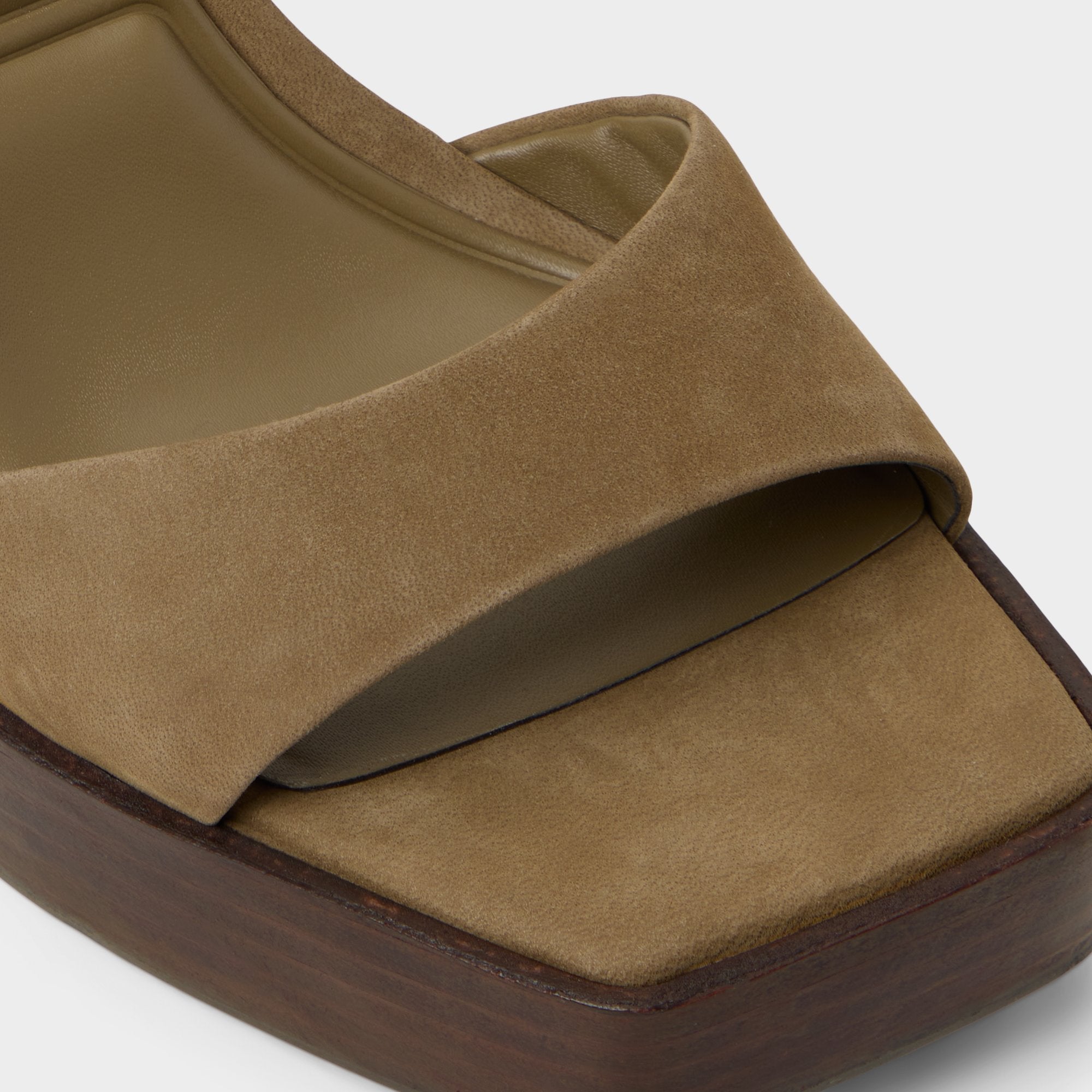 Earthy suede skims your foot while a wood-grain platform teams with a sky-high block heel, giving 70s confidence plus surprising stability across city patios and candlelit floors. Pair with cropped flares for rooftop gigs, or swap in a silky jumpsuit when birthday toasts roll past midnight.