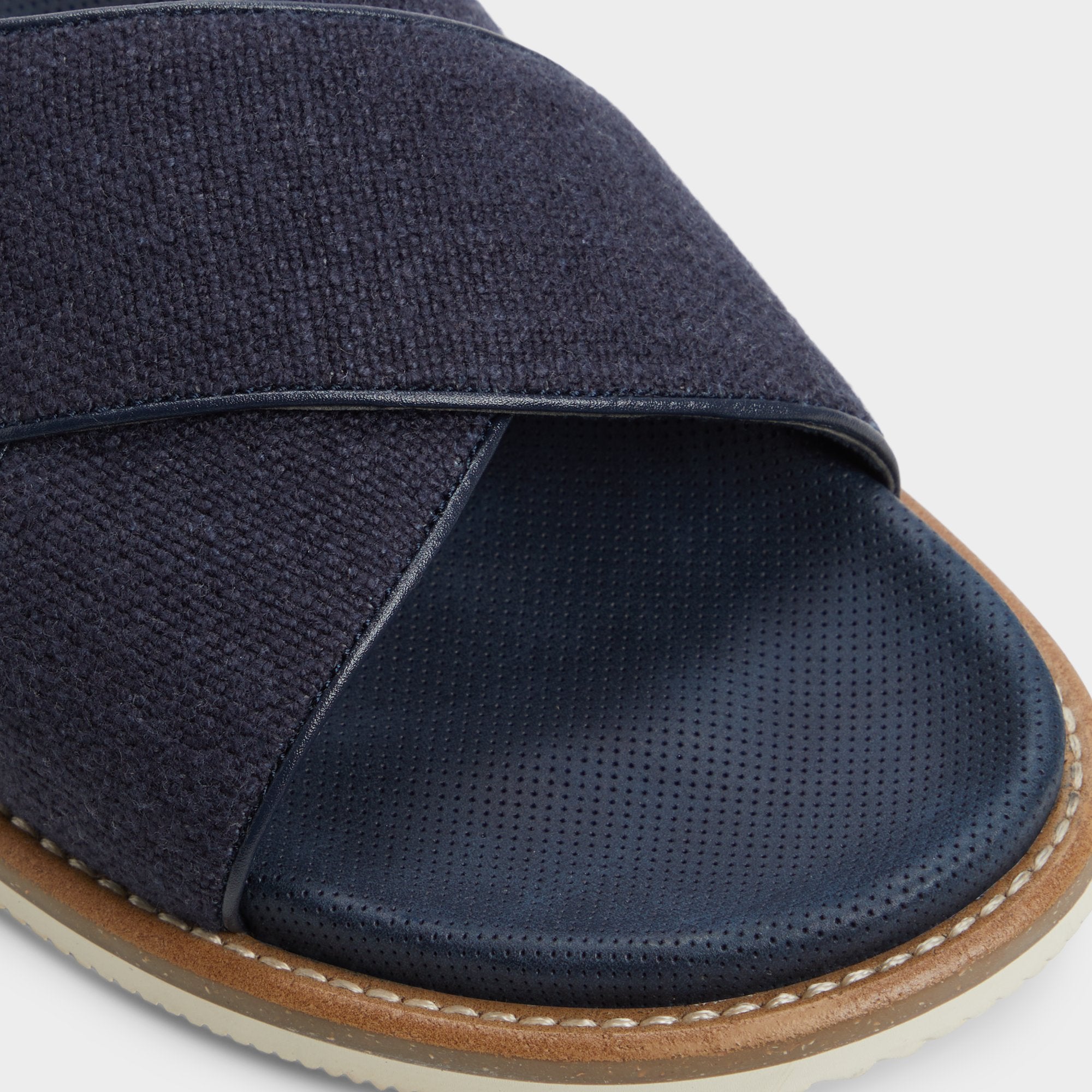 These sleek slides with with wide crossed straps will add a contemporary touch to your warm-weather wardrobe.