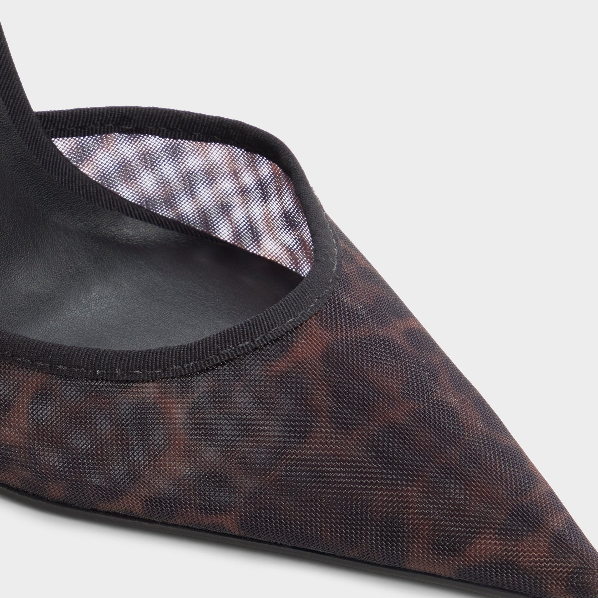 Shadowy mesh washed in subtle animal print wraps the pointy toe, while a sleek ankle strap and skyward stiletto sharpen every stride, delivering that sultry, weightless feeling the minute nightlife bar lights switch on. Pair with tailored trousers for office-into-evening plans, or anchor a slinky slip dress when rooftop celebrations edge past midnight.