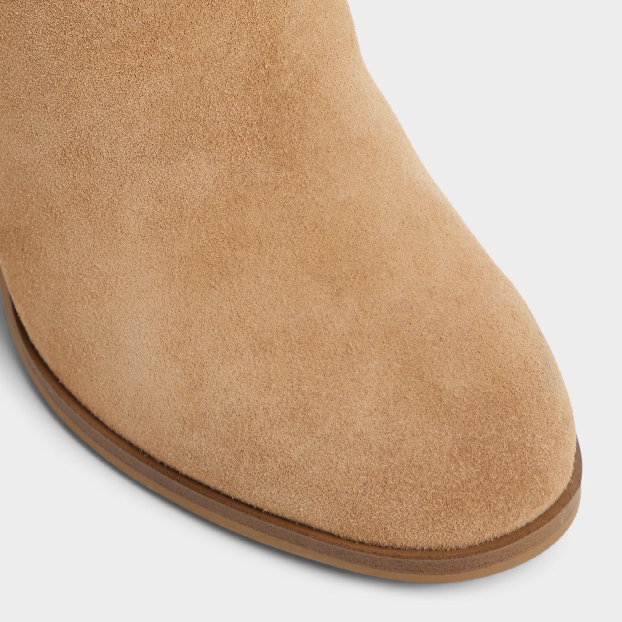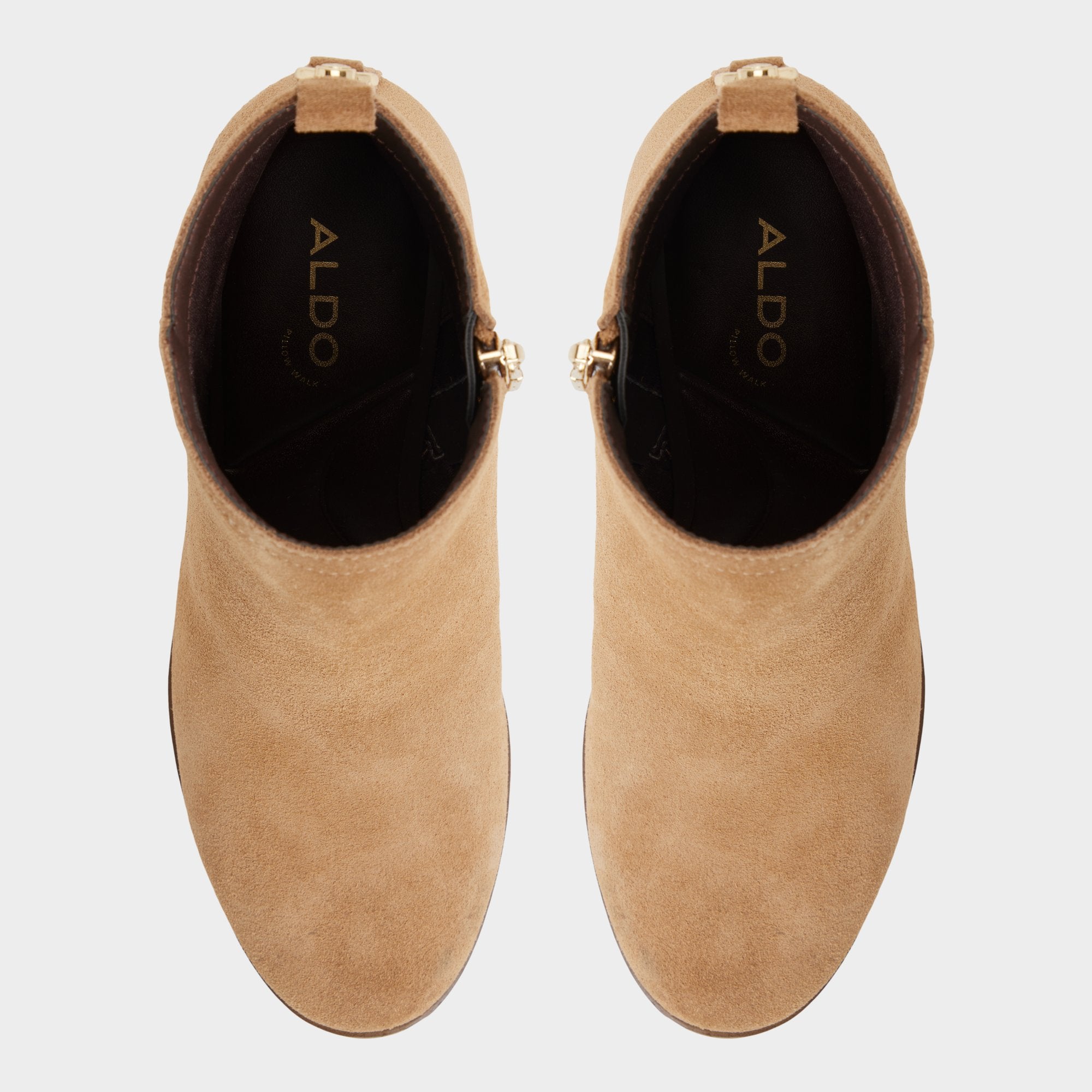 Sculpted stacked blocks elevate this ankle boot to go-all-day height, while supple sand-hued suede keeps the silhouette streamlined from morning commutes to moonlit city nights, pairing confidence with everyday wear. Pair with cropped denim for city-market runs, or ground a soft midi dress for rooftop dinners that drift into starlit chats.