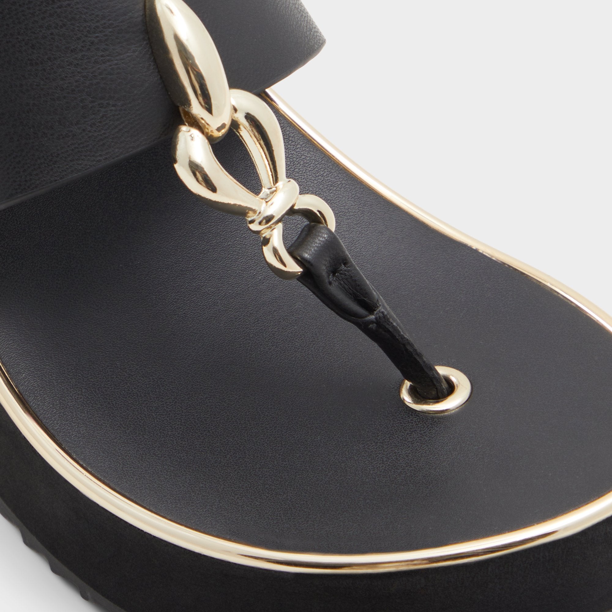 Sculpted wedge platform lifts legs and spirits while buttery black leather and polished ring accent turn this laid-back slip-on into an instant vacation complete with grippy rubber below. Pair with breezy linen pants for market strolls or swap in satin mini when sunset cocktails call.
