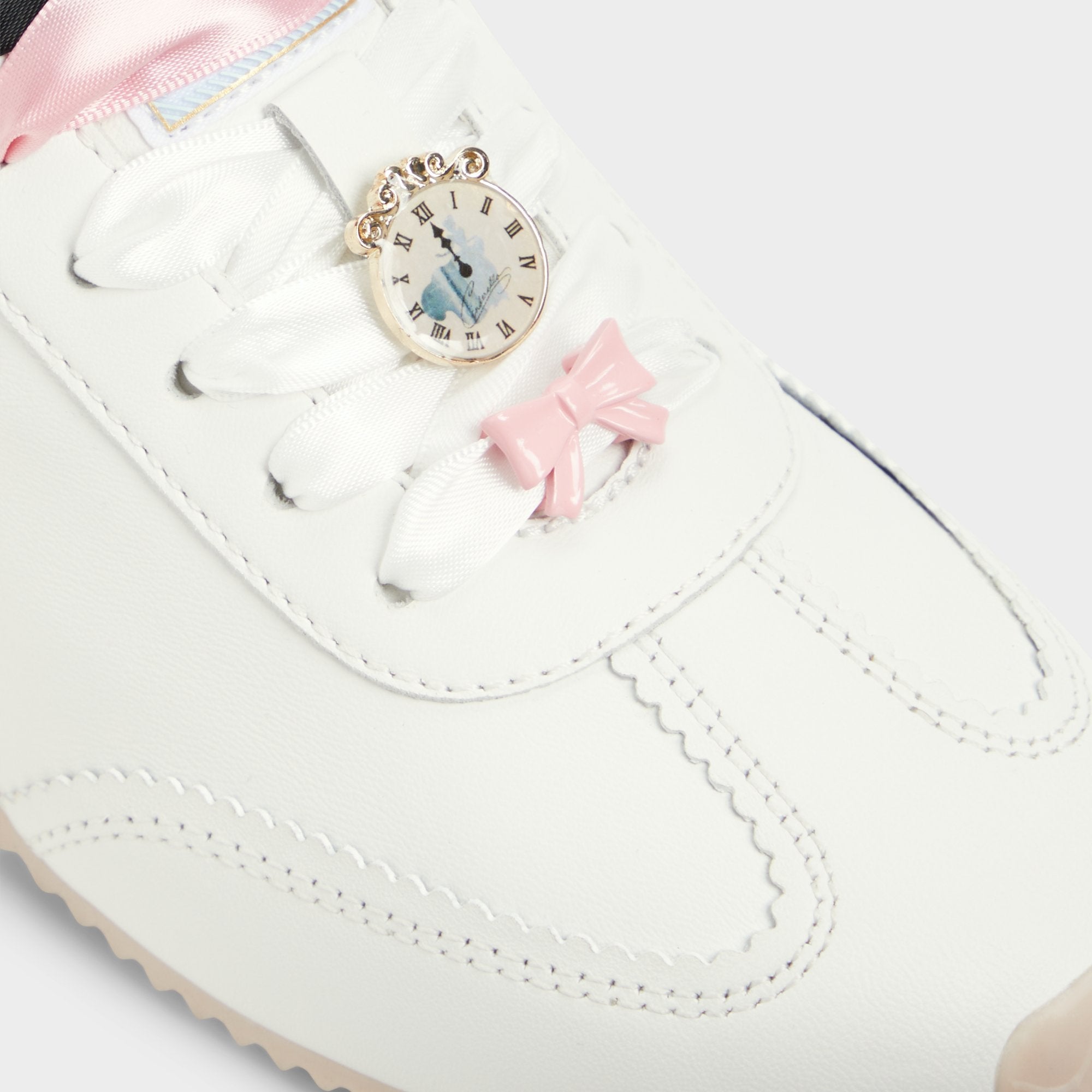 This soft, retro-inspired silhouette gets a fairytale upgrade. Interchangable pink, white, and black satin shoelaces and princess-inspired dangling charm details, make these leather sneakers easily personalizable no matter what your happy ending looks like.