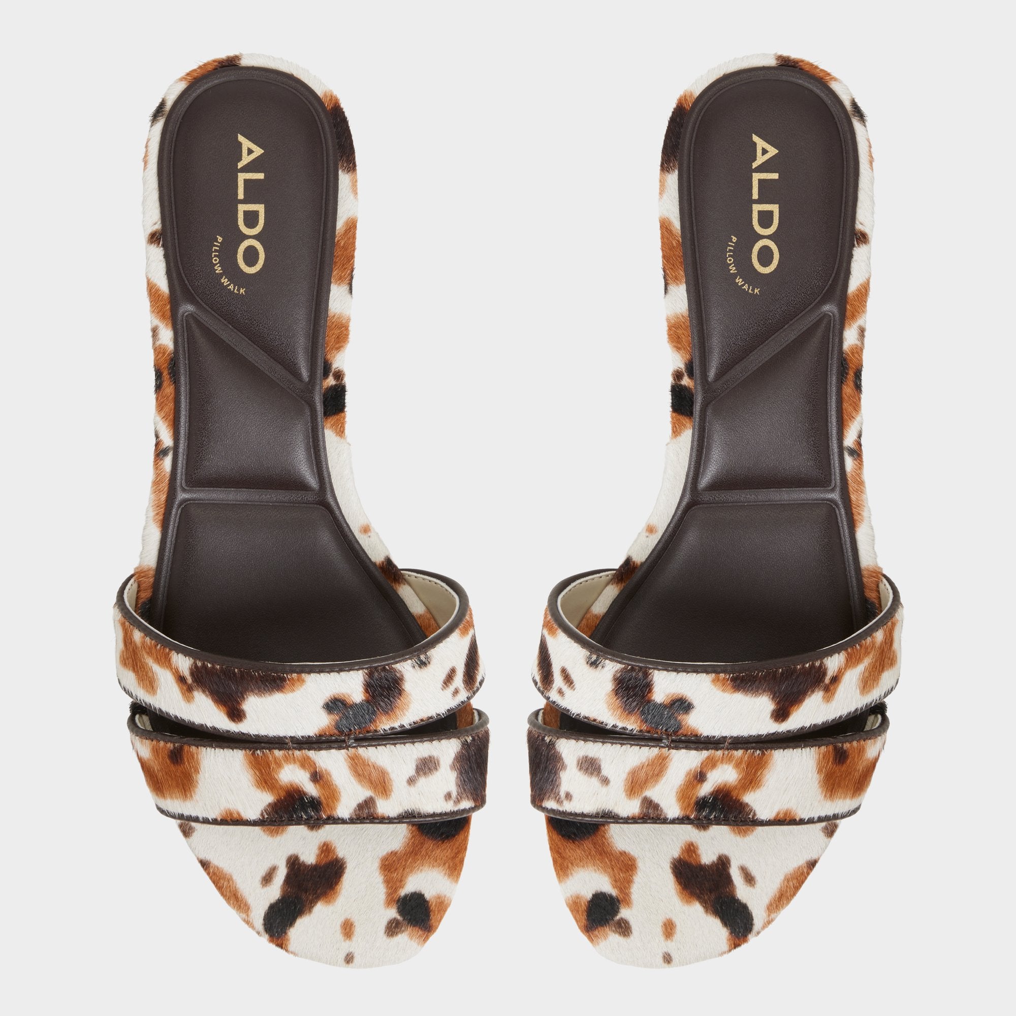 Faux-fur spots sculpt a bold, minimal slide, with a discreet micro-wedge delivering lift for effortless city strolls that feel polished from beach boardwalks to evening chats. Pair with ripped denim for concerts, or slip beneath a satin slip dress as terrace cocktails steal the sunset.