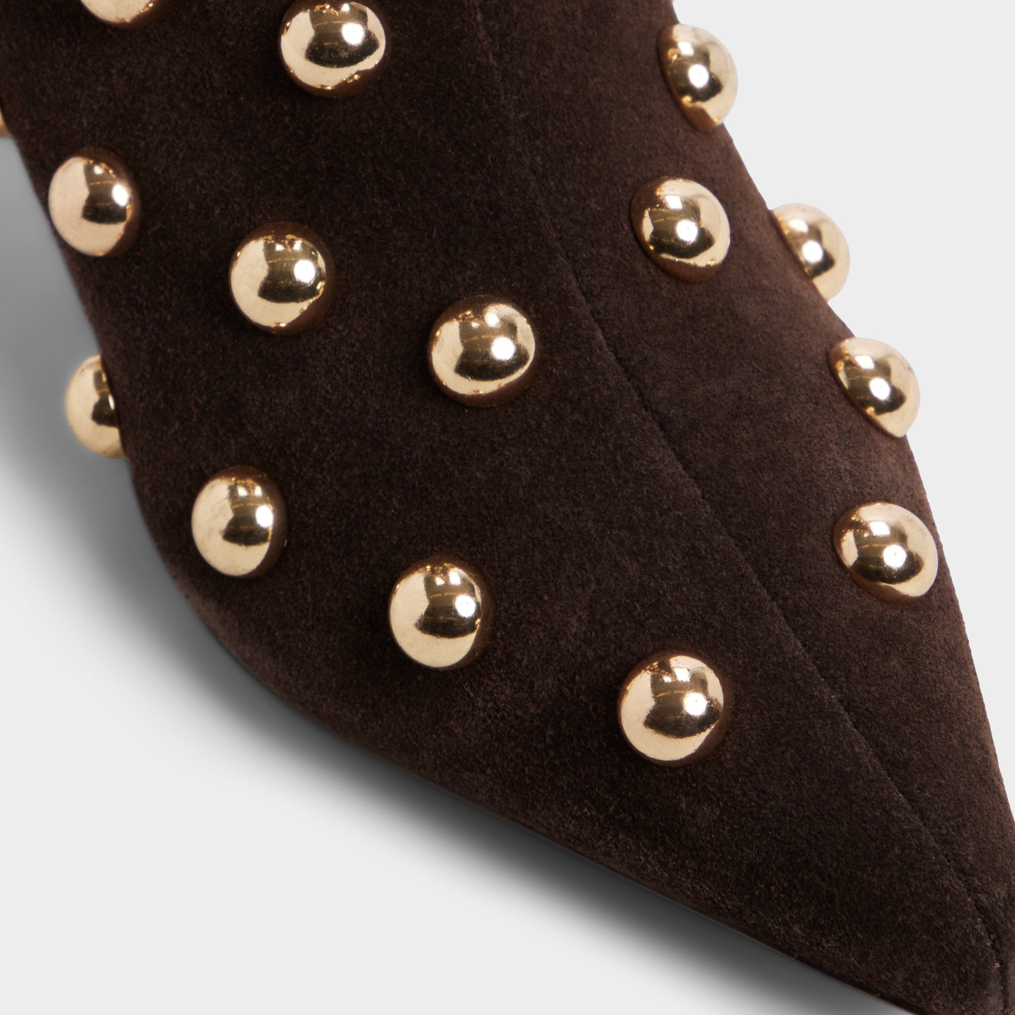 Velvety suede rises to the knee adorned with rows of gleaming gold studs that catch every sidelight, while a sleek kitten heel lets you linger comfortably at exclusive events. Pair with a leather mini for rooftop concerts, or ground a slim turtleneck-and-denim combo when errands call for quiet drama.
