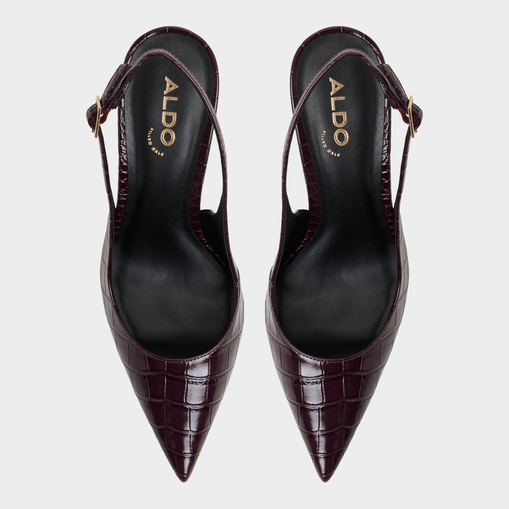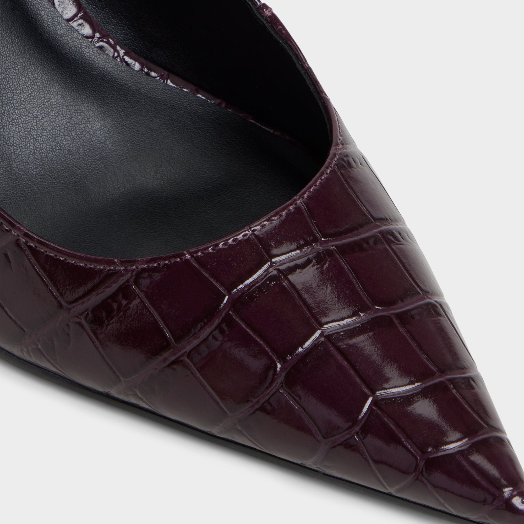 Glossy croc-embossed leather transforms the classic slingback into a little power move, with sculpted lines and a precise stiletto that keeps each stride sharp. Pair with tailored trousers for client pitches, or ground a velvet mini as gallery openings melt into late-night ramen debriefs, anywhere.