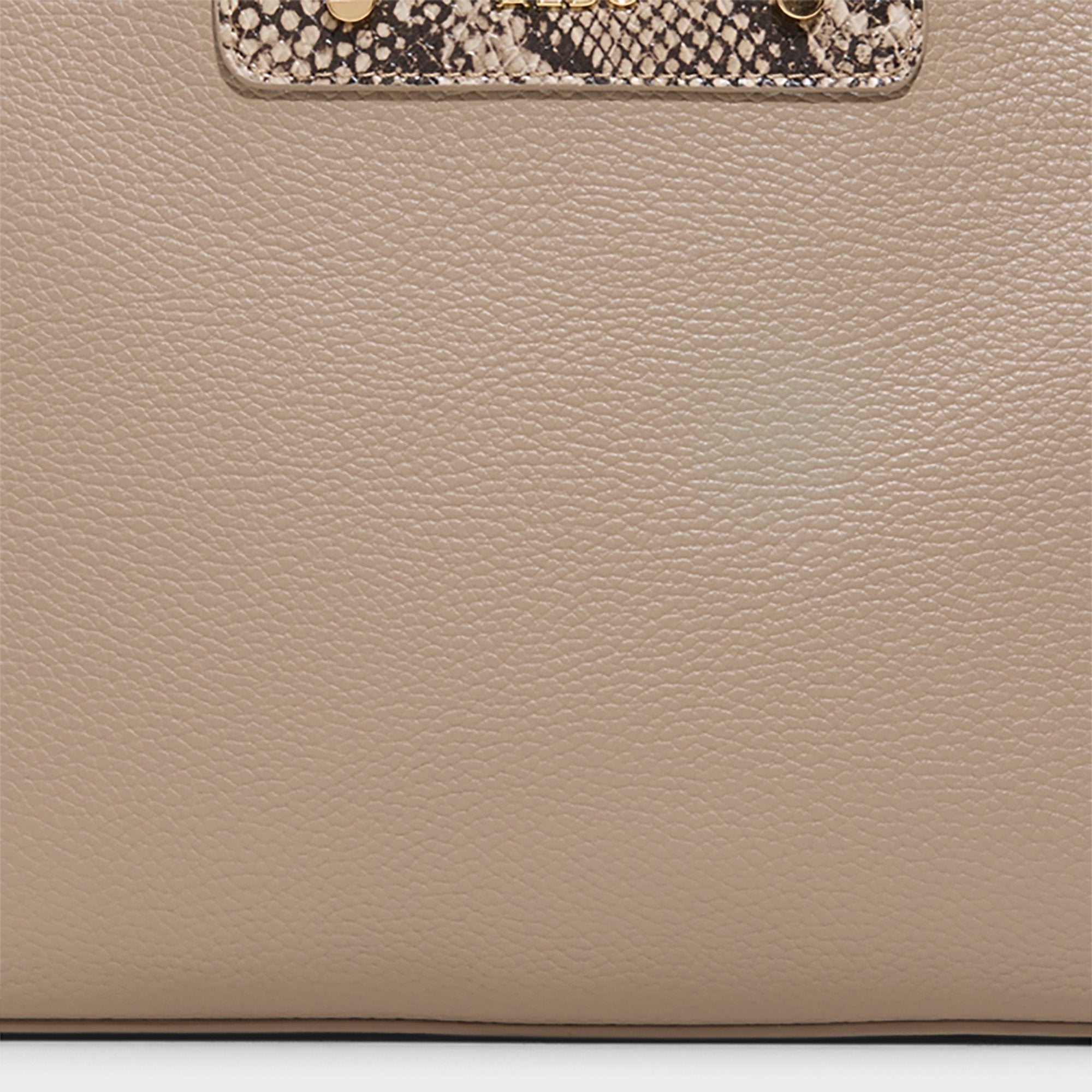 Arc-shaped gold handles crown the pebble-grain silhouette, and a snakeskin panel adds edge, while the clip-off shoulder strap flips this structured top-handle into an easy crossbody whenever the schedule shifts. Carry it with tailored trousers for office runs or sling it over a silk cami at dinner dates, polishing everything.