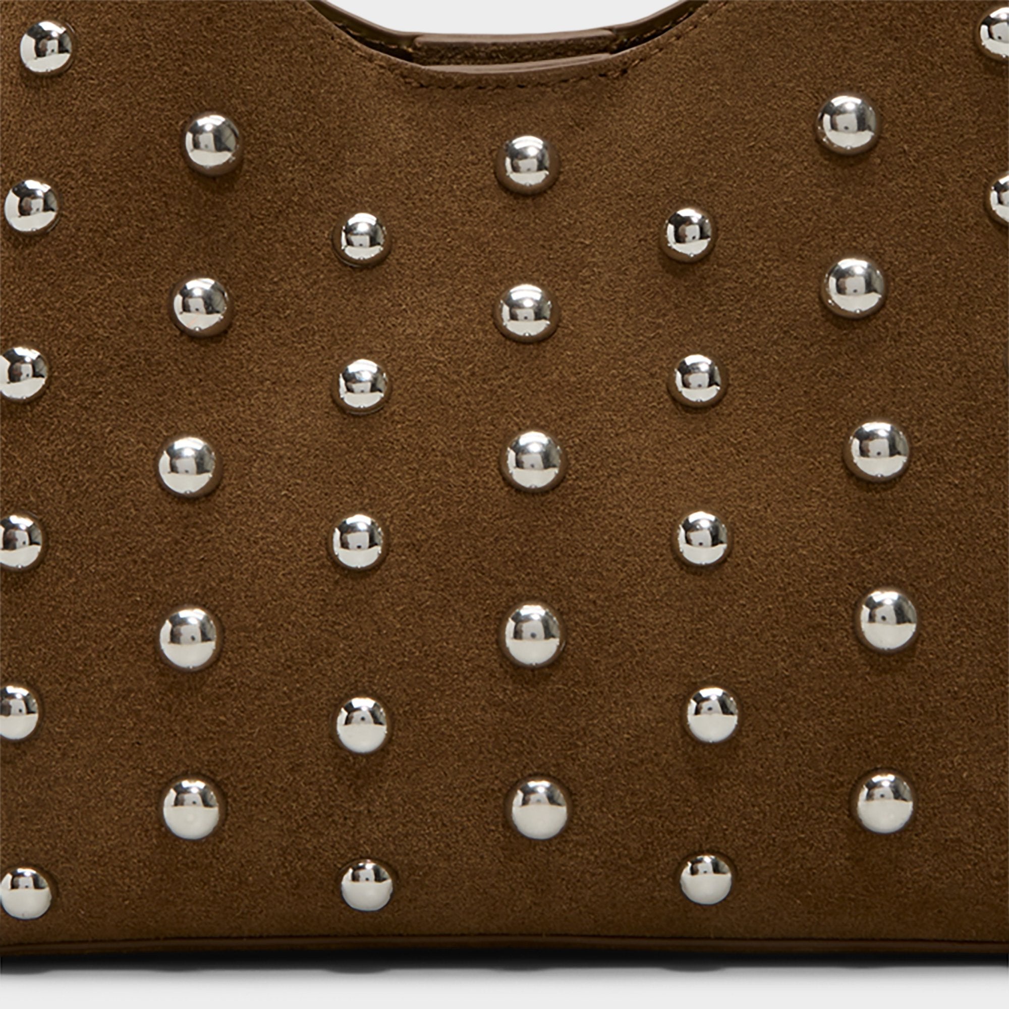 Polished silver studs illuminate the softly structured hobo silhouette, turning supple leather into wearable disco vibes while an easy magnetic snap secures phone, gloss, and more inside. Carry it with a satin cami and jeans on coffee dates or tuck it underarm at after-hour gigs to complete the vibe.