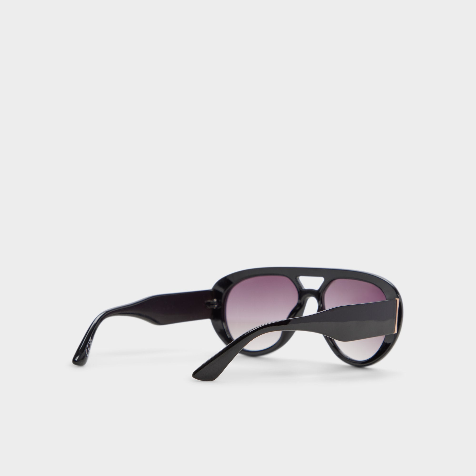 Shield-shaped lenses in a plum-to-clear gradient sit within a glossy black frame, delivering a sleek, futuristic polish that sharpens every bright moment, wherever the sun finds you. Pair them with a linen blazer for city lunches or top off a sundress at rooftop sunsets.