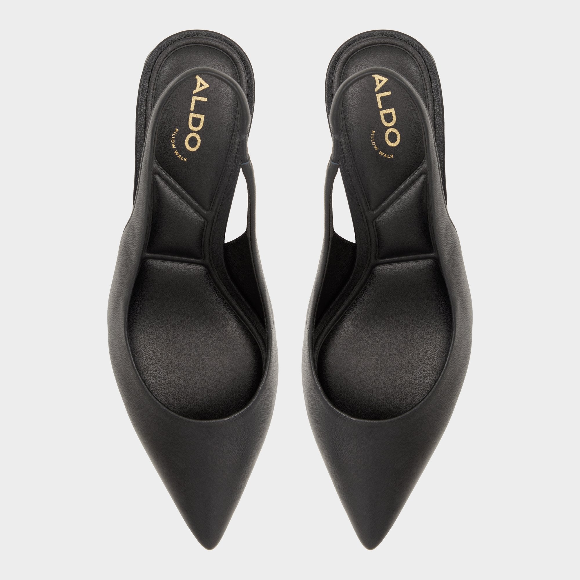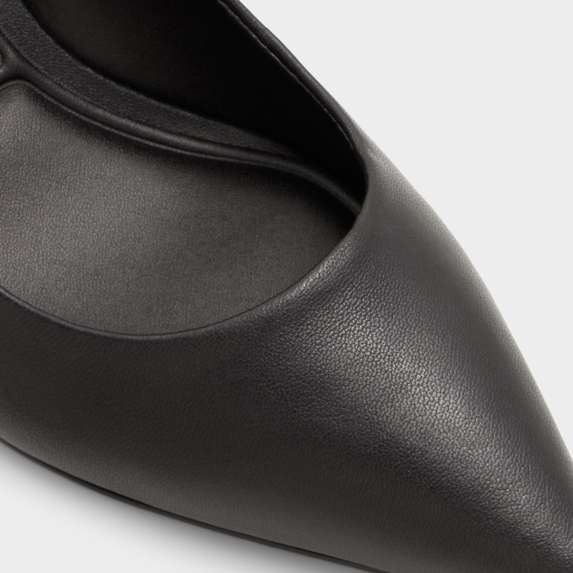 Supple black leather carves a sharp point and a sleek low-cut slingback, resting on a sculpted block heel that pairs height with steady, city-ready poise. Pair with cropped trousers for bold-morning meetings, or slip beneath a satin midi as cocktail chatter lingers past midnight, everywhere.